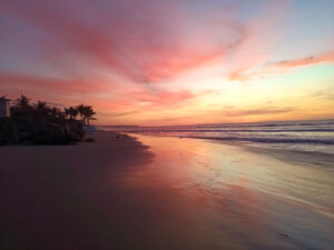 Auch heute begrüßt uns strahlender Sonnenschein. Früh laufen Susanne, Zora und ich eine etwas längere Runde dem Strand entlang. Die Sonne hat auch in den