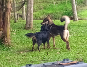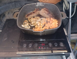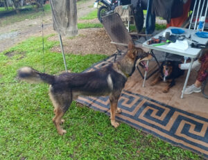Auch heute startet der Tag recht freundlich und das nutze ich aus um unsere Jeans zu waschen. Wenn die Sonne ein paar Stunden scheint, kann ich diese auch trocknen. Auch unsere restliche Wäsche wasche ich gleich anschließend. Nachdem ich die Wäsche auf die Wäscheleine aufgehängt habe, starte ich die Beta und fahre in die Stadt zum Einkaufen. Der Bierbestand ist unser das Minimum gefallen. Auch frisches Obst kann ich im La Economia Supermarkt mitnehmen. Die Beta läuft wieder zuverlässig und nachdem die neuen Reifen angefahren sind laufen diese auch auf Asphalt recht gut. Susanne will einen Apfelkuchen backen und so besorge ich auch passende Äpfel. Es ist Samstag und langsam füllt sich die Anlage hier. Da am Montag Feiertag ist nutzen doch einige Familien das lange Wochenende. Es ist auch mal wieder Zeit unsere Messer zu schärfen. Das mache ich gerne draußen und so nutze ich die sonnige Zeit. Am Nachmittag zieht sich der Himmel zu und so bin ich gezwungen die Wäsche von der Leine zu holen. Doch es ist nur ein kurzer Schauer und bereits nach wenigen Minuten klart der Himmel wieder auf. Es wird richtig sonnig und so nutzen wir das uns genießen draußen unseren noch warmen Apfelkuchen. Natürlich gehört da auch eine ordentliche Portion Sahne dazu. Zora hat einen neuen Kumpel gefunden der aber deutlich größer ist als sie. Das tut dem gemeinsamen Spiel aber keinen Abbruch. Ganz im Gegenteil. Zora kann mit Ihm zusammen so richtig Vollgas geben. Es ist allerdings ein Straßenhund und die sind hier nicht erwünscht. Wir adoptieren Ihn für ein paar Stunden, damit Zora mit Ihm spielen kann. Dann muss er allerdings wieder gehen. Wir spielen noch eine Runde Mexican Train und ich beschließe zum Abend ein Feuer zu machen. Leider ist mein kleiner Ofen mittlerweile durchgebrochen und es kommt nun kein Sauerstoff mehr rein. Ich muss in die Seitenwände Löcher bohren um die Sauerstoffzufuhr zu gewährleisten. Dennoch kann ich mein etwas feuchtes Holz gut verbrennen und einen schönen Abend draußen verbringen. Susanne fühlt sich nicht so gut und geht früh rein. Zora und ich bleiben lange draußen und genießen es mal wieder am Lagerfeuer zu sitzen.