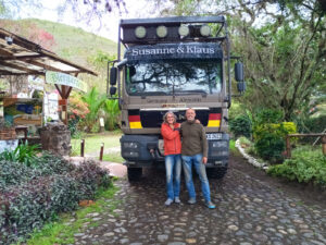 Heute ist nun der Tag, wo wir nach 35 Tagen die Finca Sommerwind verlassen. Wir verabschieden uns von Silvia und Bernd und auch von der ganzen Mannschaft der Finca. Hans ist noch unterwegs und so können wir uns nur per Whattsapp bei Ihm verabschieden. Unser heutiges Ziel ist nur ca. 100 Kilometer entfernt, allerdings sind doch 1000 Höhenmeter zu überwinden. Das MANle läuft ruhig und alles funktioniert gut. Schnell sind wir aus der Stadt und über die E35 erreichen wir schnell den Abzweig zur Laguna de Cuicocha. Daran fahren wir allerdings vorbei und folgen der schmalen Bergstraße Via Cotacachi-Quiroga-Cuiocha. Diese windet sich sehr kurvenreich immer am Berg entlang auf ca. 3500m Höhe. Unser Ziel ist die Termales Nangulvi. Dort am Rio Intrag wollen wir die Nacht verbringen. Wir halten zur Mittagspause beim Valle Verde an. Hier kann man viele Kolibris und Orchideen anschauen. Es regnet zwar, doch das hält uns nicht davon ab den kleinen Wanderweg zu den Aussichtspunkten zu laufen. Zora liebt das Schmuddelwetter eh und ist wieder weit voraus. Zurück beim MANle gönnen wir uns ein Mittagessen und setzen anschließend unsere Reise fort. Es sind nun nur noch wenige Kilometer bis zu unserem Ziel. Da es weiterhin regnet ist die Termales Nangulvi wir ausgestorben. Wir können hier für 20$ übernachten und die Termales benutzen. Der Rio Intrag führt Hochwasser und ist sehr laut. Zora lassen wir vorsorglich nicht in die Nähe des Flusses. Die Strömung ist extrem stark und das Flussufer sehr aufgeweicht. Vorsorglich stellen wir das MANle gute 15m vom Fluss entfernt ab. Wir starten zu den heißen Becken um uns aufzuwärmen. Tatsächlich sind die Becken sehr warm und wir haben eines ganz für uns allein. Nur wenige Leute sind da, doch die sind alle in den etwas kälteren Becken. Nachdem wir aufgeweicht sind gehen wir zurück und lassen Zora noch etwas draußen unter Aufsicht herumtollen. Sie war heute lange in Ihrer geliebten Hundebox und hat etwas mehr Auslauf redlich verdient. Seit langer Zeit müssen wir mal wieder drin kochen, da es draußen zu stark regnet. Dafür ist es mit knapp 20°C auch am Abend noch angenehm warm. Trotz des lauten Rio Intrag öffnen wir alle Fenster um die Kochgerüche abziehen zu lassen. Nachdem die Fenster zur Flussseite geschlossen sind kehrt Ruhe ein im MANle. Wir sind froh wieder auf Tour zu sein und freuen uns schon auf die weiteren Abenteuer.