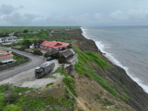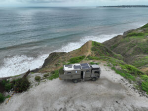 Wieder regnet es ich der Nacht sehr stark und der Boden ist am frühen Morgen eine einzige Schlammwüste. Zum Glück haben wir das Meiste bereits gepackt und nachdem Nayru die Lage gecheckt hat, fahren wir los. Unterwegs kaufen wir noch Lebensmittel und Trinkwasser, damit wir die nächsten Tage wieder autark stehen können. Teilweise sind die Straßen stark mit Schlamm bedeckt und viele Bereiche des Landes stehen unter Wasser. Da muss wohl ein heftiges Unwetter runter gegangen sein. Unser erster Anlaufpunkt ist die Halbinsel Salinas. Dort besuchen wir die Mähnenrobben und fahren auch ganz raus zum Mirador La Chocolatera. Da Zora ein Servicedog ist darf sie überall mitgehen. Bei der Einfahrt werden wir vom Militär kontrolliert, da es hier einen großen Militärflughafen gibt. Auch viele Gebäude des Militärs stehen hier. Doch alle freuen sich, dass wir da sind und sind sehr freundlich. Nachdem wir alles angeschaut haben, fahren wir weiter nach Ancón. Hier wollen wir bei Olando´s House übernachten. Doch das geht komplett schief, denn es ist niemand da und das MANle passt unmöglich auf den Hof. Doch keine 100m weiter ist ein schöner ebener Parkplatz, der zum Restaurant EL Barranco gehört. Dieses hat aber nur am Wochenende geöffnet, so dass wir niemand stören, wenn wir hier übernachten. Der Nachbar kommt vorbei und wünscht uns eine gute Nacht. Er erklärt uns auch, dass das hier eine sehr sichere Gegend sei und wir uns keine Sorgen machen müssen. Doch Nayru ist da anderer Meinung und empfiehlt uns einen Mirador keine 800m von hier entfernt. Auch dieser Platz ist schön, allerdings nun sehr schlammig und so beschließen wir hier stehen zu bleiben. Nachdem ich Ihr die Bilder geschickt habe, ist sie der gleichen Meinung. Zora kann hier auch ungestört rumstöbern, da auf der Straße kein Verkehr ist. Keine 50m weiter endet die Straße und wir zum Feldweg. Wir bereiten das Abendessen zu und gehen dann zum gemütlichen Teil über.