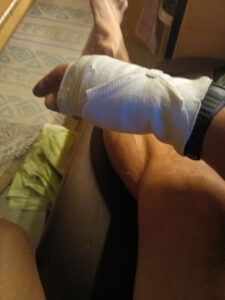 Wir haben uns für 17:00 Uhr bei Kika und Anour zum Abendessen angemeldet. Pünktlich sind wir oben, den wir wollen ja nicht kalt essen. Anour hat sich viel Mühe gegeben und das Essen ist köstlich. Kika gesellt sich nach dem Essen zu uns und wir unterhalten uns nach dem Essen über Gott und die Welt. Leider sind wir so in unser Gespräch vertieft, dass wir die Hunde nicht beobachten. Zora klaut Bidushas Knochen und verschwindet unter dem Tisch damit. Das lässt sich Bidusha nicht gefallen und stürzt sich auf Zora. Diese wimmert sofort herzergreifend und Bidusha lässt nicht von Ihr ab. Ich greife ein und reiße Bidusha von Zora runter. Zora interpretiert meine Hilfe aber als weiteren Angriff von Bidusha und beißt gnadenlos zu. Eine tiefe Fleischwunde und ein gequetschter Daumen und Mittelhand sind die Folge. Wir können die Blutung schnell stoppen, doch die Hand geht auseinander wir ein Hefeteig. Schnell ist die Hand bewegungsunfähig und die Schmerzen setzen ein. Mit Alkohol und Desinfektionssalbe behandeln wir die Wunde und verbinden die Hand. Zora hat glücklicherweise nichts abbekommen und auch Bidusha geht es gut. Nach gut einer Stunde lassen die Schmerzen etwas nach und so kann ich mich um Zora kümmern. Sie ist ziemlich verstört und verkriecht sich sofort ins Bett. Auch ich folge Ihr früh. Den die Schmerzen in der Hand wollen nicht weichen. Zora ist sehr anhänglich und so liegen wir Arm in Arm im Bett. Die Hand wird wohl für einige Zeit unbrauchbar sein, war das Fahren mit dem MANle und der Beta erst Mal unmöglich macht.