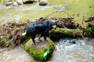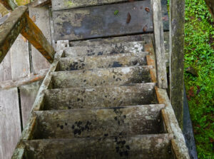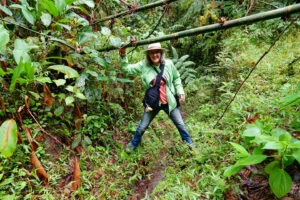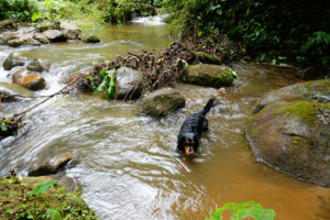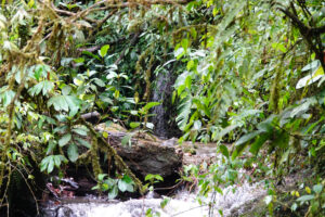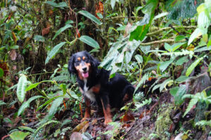 In der Nacht hat es angefangen zu regnen und das hört auch bis zum späten Vormittag nicht auf. Da hat keiner Lust das MANle zu verlassen. Doch es klart etwas auf und sofort starten wir eine weitere Runde in den üppigen Nebelwald. Unser Ziel ist der Fluss unten im Tal. Der Weg dorthin ist zwar im Moment gesperrt, doch das hält uns nicht auf. Zora ist wieder Feuer und Flamme für den eingeschlagenen Weg. Hier kann sie so richtig rumstreunen. Das hat sie nach der langen Standzeit auf der Finca Sommerwind redlich verdient. Wir lassen sie daher ungestört Ihrer Wege gehen und rufen sie nicht zurück. Der Fluss führt hat normalen Wasserstand und so kann da nix passieren. Als wir uns auf den Rückwegmachen dauert es nicht lange und Zora überholt uns wieder. Unser nächster Anlaufpunt ist der kleine Aussichtsturm, der hier inmitten des Nebelwaldes aufgestellt wurde. Die Treppe ist sehr steil, doch für Zora keine Herausforderung. Neu ist allerdings, dass auch der Abstieg für Zora nun kein Problem darstellt. Nachdem wir einige Zeit ausgeharrt haben, ohne etwas Besonderes zu sehen, machen wir uns auf den Rückweg. Kaum sind wir zurück, beginnt es wieder zu regnen und so sind wir ans MANle gebunden. Wir nutzen die Zeit, um zu kochen, damit wir das nicht heute Abend tun müssen. Scnell sind die Kartoffeln geschält und in kleine Stücke geschnitten. Anschließend angebraten und durchgedämpft eine tolle Beilage. Nun kommen die großen Steaks dran. Die sind recht dick und benötigen gute 20 Minuten zum Garen. Mit Zwiebeln und Karotten als Beilage ein köstliches Mahl. Plötzlich stehen Silvia und Peer vor unserer Tür. Die beiden haben sich hierherfahren lassen und wollen einige Tage hier verbringen. Noch immer steht Ihr Sprinter in Quito und wartet auf Ersatzteile. Doch die beiden brauchen einen Tapetenwechsel und sind daher nun hierhergekommen. Wir trinken einen Kaffee zusammen und berichten von unseren letzten Erlebnissen. Es sieht wieder nach Regnen aus und so machen sich die beiden auf den Rückweg zu ihrem gemieteten Cabana. Noch ist alles trocken und schnell räumen wir alles zusammen und verstauen auch Tische und Stühle gleich im MANle. Draußen wird es ungemütlich und der Regen lässt nicht lange auf sich warten. So bleibt nur der Rückzug ins warme und gemütliche MANle.