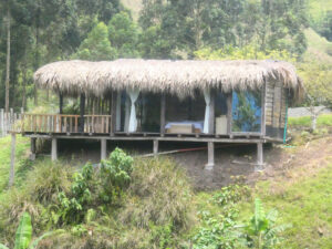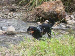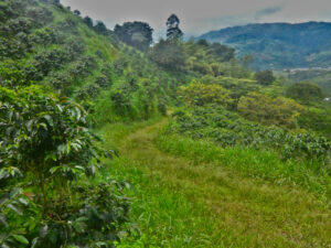 Jorge hat mir einen Wanderweg gezeigt der direkt hinter seinem Grundstück beginnt. Es ist eigentlich eine Zufahrtstraße zu den Kaffeeplantagen und auch einige Finkas sind nur über diesen Feldweg zu erreichen. Das Wetter startet heute freundlich und so machen wir uns früh auf den Weg. Tatsächlich ich auf dem Weg kein Verkehr und so kann Zora wieder frei laufen. Wir nehmen als erstes den Abzweig hoch zu den Kaffeeplantagen. Der Weg geht steil bergauf bis wir den Bergrücken erreichen von hier aus führt der Weg eben auf dem Kamm. Rechts und links geht es steil die Kaffeefelder hinunter. Einige der Felder werden gerade erneuert und hierzu werden die Kaffeepflanzen abgeschnitten und sie treiben seitlich wieder neu aus. Sollten sie das nicht tun werden sie durch neue ersetzt. Der weg endet als Sackgasse weit oben in den Bergen. Wir laufen zurück und folgen nun dem Hauptweg der dem Fluss entlang geht. Dieser liegt aber weit unter uns im Tal. Erst nach zwei Kilometern können wir an einer steilen Stelle runter an den Fluss. Das ist für Zora nun der Hauptgewinn und sie kriegt sich nicht mehr ein. Sie tobt wie verrückt im Wasser und ich lasse Ihr viel Zeit damit. Zwar sieht der Himmel bedrohlich aus, doch davon lassen wir uns nicht hetzen. Tatsächlich verzieht sich das dunkle Wolkenband und es wird wieder sonnig. Auch hier endet der Weg an deiner Finka. So nehmen wir den Abzweig hoch in die Berge. Diesem flogen wir noch gut eine Stunde bevor wir umdrehen. Morgen ist auch noch ein Tag. Wir gehen nun zurück und nehmen wieder die Runde runter zum Fluss. Nach über drei Stunden sind wir wieder zurück beim MANle. Es ist ein weiterer Camper aus Pereira mit einem zus. PKW angekommen. Wie hier üblich lassen sie gerade mal einen Meter Platz zum MANle. Wenn ich das Motorrad nutzen will muss ich es Rückwärts wegschieben um an den Fahrzeugen vorbeizukommen. Schön ist anders, aber damit muss man hier leben. Zum Glück findet das alles hinter dem MANle statt und so ist nur das Kindergeschrei etwas nervig. Auch heute kochen wir draußen, da es nicht regnet und das muss man nutzen. Wieder lasse ich mir mit der Zubereitung viel Zeit, denn es gibt ja sonst nichts zu tun.