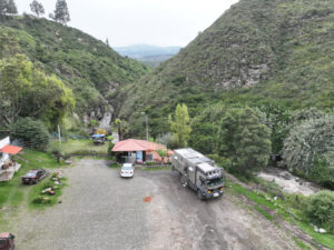 Schon früh um 07:00 Uhr sind wir draußen, um bei der Fütterung der Tukane dabei zu sein. Pedro hat schon halbe Bananen auf Ästen aufgespießt uns so heißt es für uns leise und geduldig zu sein. Das können nicht alle und so herrscht erst Ruhe als Silvia wieder zurück ins Haus geht. Tatsächlich kommen dann die Tukane wenig später, um Ihre Leckereien abzuholen. Anschließend verabschieden wir uns von allen und starten zu unserem nächsten Besuchsspot dem Midad del Mondo in der Stadt San Antonia de Pichincha. Hier haben sich sie alten Heren aber ordentlich vermessen, denn der wahre Mittelpunkt der Erde liegt gute 68 Kilometer von hier entfernt. Hier ist richtig viel los und die Museen sind schön gemacht. Doch wir wollen weiter zum echten Mittelpunkt der Erde und so fahren wir weiter. Es ist schon sehr spät am Nachmittag, als wir am Solar Museum ankommen. Hier steht eine große rote Säule, die den tatsächlichen Mittelpunkt der Erde markiert. Das bestätigt auch meine Garmin Uhr die 00.00.0000 anzeigt. Es gibt hier auch einen schönen Agavengarten der tolle Pflanzen beinhaltet. Da Zora hier überall mit gehen darf können wir uns lange aufhalten. Wir haben unterwegs noch das Reservat Puhulahua angefahren. Doch zum einen sind hier Hunde verboten und der Krater steckt im tiefen Nebel. Wir fahren einen teil die Piste runter zum Krater, doch als alles im Nebel versinkt, drehen wir um. Etwas weiter oben lichtet sich der Nebel etwas und wir können ein kleine Runde wandern. Zum Übernachten stellen wir uns an die Piscina Termales Guachala. Hier kann man auf dem Parkplatz kostenlos stehen. Es ist zwar alles die gesamte Nacht hell beleuchtet und der Rio Pisque führt Hochwasser und ist sehr laut, doch das stört keinen mehr und so wird es eine gute Nacht. Bereits um 04:00 Uhr öffnet das Bad schon wieder.