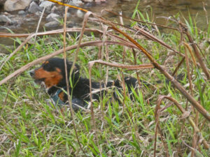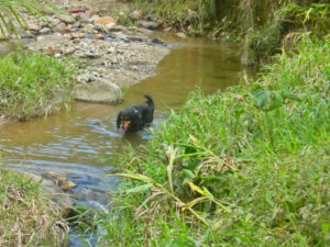 Da Zora gestern so viel Freude am Fluss hatte sind wir heute schon früh losgezogen um noch einmal dort einige Zeit zu verbringen. Der Wetterbericht verspricht für den Nachmittag heftigen Regen und so wollen wir spätestens zur Mittagszeit zurück sein. Wir zu erwarten dreht Zora mächtig auf und erkundet weiträumig das ganze Areal. Mit ist das zu schlammig, daher bleibe ich am befestigten Ufer stehen. Nachdem sie ausgetobt hat gehen wir weiter bis zum Ende des Weges. Das sind rund 2,4 Kilometer und so haben wir unser Soll für heute gut erfüllt. Als wir zurück sind legt sich Zora hin und schläft. Sie hat genug Bewegung gehabt. Ich richte mir ein kleines Frühstück und räume das MANle etwas auf. Am Nachmittag kommt mich die Nachbarcamper besuchen. Sie haben viele Fragen zum Camper und versuche alles so gut wie möglich zu beantworten. Zora ist auf der Anlage unterwegs und kommt erst am Abend wieder zurück. Wieder sind heute einige Hunde da und so hat sie viele neue Freunde zum rumtoben. Es beginnt zu regnen und so räume ich schnell alles weg. Doch wie so oft hier klart der Himmel schnell auf und es scheint die Sonne. Das nutze ich und hänge meine Wäsche zum Trocknen raus. Ich habe das restliche gebratene Fleisch zum Abkühlen auf die Anrichte gestellt. Welch an Anfängerfehler wenn es um Zora geht. Währen ich draußen sitze hat sie gestern Abend in aller Seelenruhe das ganze Fleisch gefressen. So gibt es heute mit Schinken und Käse überbackene Toast, aber Zoras Maul bleibt sauber. Wenigstens ist mir der restliche Karottensalat geblieben. Die Kühlschranktür kriegt sie noch nicht auf. So geht der Tag ereignislos zu Ende. Zora bleibt wieder draußen liegen, doch mir ist es zu kalt.