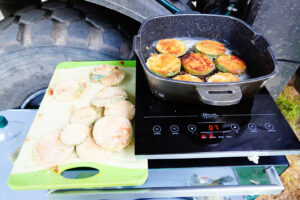 Auch diese Nacht verläuft sehr ruhig und wir sind gut ausgeschlafen und voller Tatendrang. Um weiter waschen zu können muss ich aber unsere Wassertanks wieder auffüllen, was hier überhaupt kein Problem ist. Auch Strom haben wir genug, so dass schon früh die Waschmaschine wieder läuft. Um unsere neuen Auffahrbretter vor der Nässe zu schützen, streiche ich sie mit der grauen Farbe, die ich noch habe. Danach mache ich mich daran unsere Rampen noch einmal sinnvoller zu befestigen. So hört nun auch das Klappern auf. Nun ist es an der Zeit auch den Reifen wieder aufzupumpen, um die Dichtigkeit zu prüfen. Tatsächlich bildet sich noch eine Seifenblase, die aber gut 10 Sekunden braucht, bis sie platzt. Das ist so gut wie nichts und so hacke ich das jetzt ab. Nachdem nun auch die letzte Waschmaschine fertig ist, fülle ich noch einmal unsere Wassertanks, um so gut wie möglich für die Weiterfahrt gerüstet zu sein. Wir konnten alles reparieren, was Defekt war, so können wir nun wieder in die Berge fahren. Wir bereiten noch einmal unser Abendessen vor dem MANle zu, bevor wir unsere Sachen zusammenpacken.