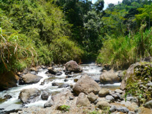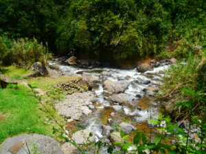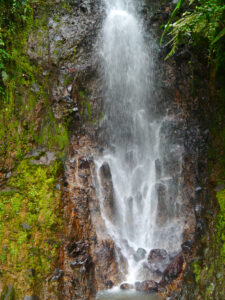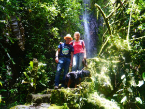 Spät am Abend sind noch weitere Gäste mit PKW´s hier eingetroffen. Nach einer sehr ruhigen Nacht kommen Widab und Pablo zu uns da sie ein sehr klares Spanisch sprechen können wir uns gut mit Ihnen unterhalten Widab war Ärztin und spricht gut Englisch. Wenn es mit spanisch nicht weitergeht wechseln wir ins Englische. Wir verabreden uns, gemeinsam zum nahegelegenen Aussichtspunkt zu wandern. Ihr Hund Faith und Zora sind schnell dicke Kumpels. Ausgelassen toben die beiden herum und haben viel Freude miteinander. Wir verabreden uns zu einem gemeinsamen Ausflug in die umliegenden Berge. Die beiden wollen nicht laufen uns so fahren wir mit dem Auto hoch zum Aussichtspunk. Von hier aus hat man einen herrlichen Ausblick über die Stadt. Auf den Rückweg stoppen wir an einer Höhle mit dem Namen Cueva de los Murcielagos. Nachdem wir unseren Eintritt bezahlt haben führt uns Mario in die unterirdischen Gänge. Am Ende er Höhle ist ein Ausgang der uns direkt zu einem der vielen Wasserfälle führt. Zora und Faith sind ja beide Wasserratten und so dauert es nicht lange bis die beiden ein ausgiebiges Bad nehmen. Zurück beim Auto trennen wir uns von Widab und Paplo, denn wir wollen zurück laufen. Es sind nur rund zwei Kilometer und das Laufen ist in der letzten Zeit zu kurz gekommen. Gemeinsam wollen wir am Abend zum Essen in die Stadt gehen. Doch daraus wird nichts, da uns der Regen einholt. Bis in die frühen Abendstunden regnet es und so kommen Widab und Pablo nicht zurück. Wir laufen mit Zora in die Stadt zum Abendessen und ein wenig die Stadt anzuschauen. Susanne hat unsere Wäsche zur Abholung abgegeben und wir haben vereinbart, diese erst am Montag abzuholen. Das Wochenende bleiben wir hier auf dem Campground stehen.