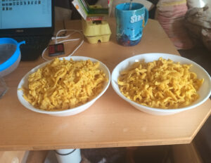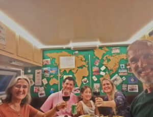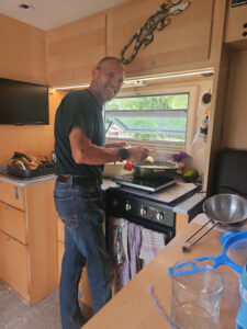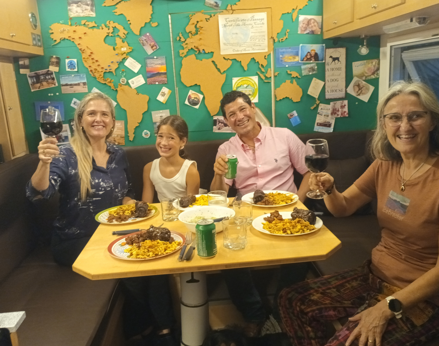 Heute hat der Regen eine neue Dimension erreicht. Schon früh fängt es an zu regnen und hört bis in die frühen Abendstunden nicht mehr auf. So sind wir im MANle gefangen und beginnen unsere Sachen für den heutigen Abend aufzuräumen. Susanne fährt mit John zur Physiotherapie und ist fast zwei Stunden weg. Als sie zurück ist beginnen wir unsere Rollladen und die Soße herzurichten. Wir lassen diese gut eine Stunde bei sehr niedere Hitze in der Pfanne schmoren. Als unsere Gäste eintreffen, gebe ich Butter in die Pfanne und lasse die Spätzle darin warm werden. Tatsächlich haben wir noch fünf Teller, Gabeln und Messer. Susanne und Lina trinken Rotwein und auch dafür haben wir passende Gläser. Jorge und ich trinken Bier aus der Dose und Emma will nur ein Glas Wasser. So haben wir auch mit den Gläsern keine Not. Das Essen ist etwas komplett Neues für Lina und Jorge. Doch alle sind sehr angetan vom Essen und die Teller sind schnell leer. Wir gönnen uns im Anschluss noch ein Eis. Auch Zora ist von den Spätzlen mit Soße angetan und der Napf ist blitzblank geschleckt. Da Emma sehr früh aufstehen muss um in die Schule zu gehen verabschieden Sie sich früh und geht zurück. Lina und Jorge bleiben etwas länger und wir sprechen viel über unsere Reiseerlebnisse. Auch heute Abend lernen wir viel über die kolumbianische Kultur und den Kaffeeanbau. So geht der Abend viel schneller zu Ende als wir uns das wünschen, doch Lina und Jorge müssen morgen Arbeiten und wollen im Anschluss mit Ihrem Campinganhänger auch auf Tour gehen. Dafür gibt es wohl noch einiges zur richten und so haben die beiden noch etwas Arbeit vor sich. Sie laden uns ein mit Ihnen zu fahren, doch da Susanne noch nicht ins Fahrerhaus des MANle steigen kann, müssen wir das leider verschieben. Aber Sie schicken uns Bilder und klären für uns ab, ob wir den Weg auch fahren können. Nach dem alle gegangen sind, erledigen wir gemeinsam den Abwasch. Auch diese Aufgaben machen müde und so gehen wir früh zu Bett. Zora hat sich den Bauch mit Spätzlen vollgeschlagen und schläft schon selig. Natürlich auf meinem Kissen. Ich lasse sie Schlafen und lege micheinfach daneben. Die würzige Soße zwingt sie eh bald aufzustehen und Ihren Durst zu stillen. Das ist meine Changs meinen abgestammten Platz einzunehmen.