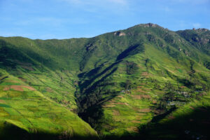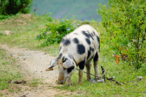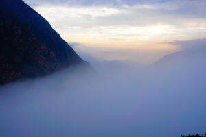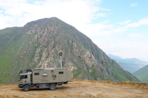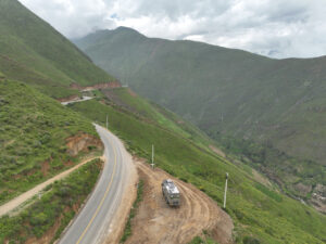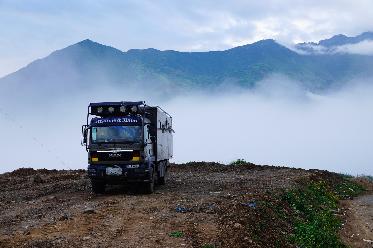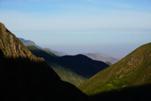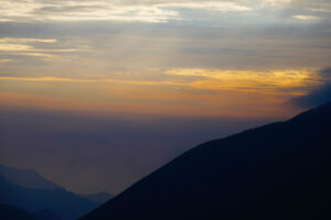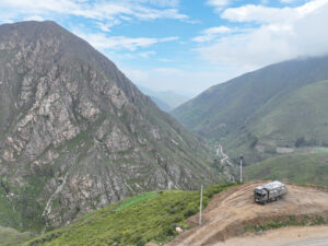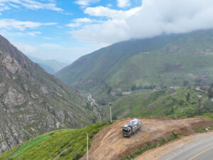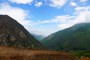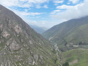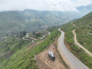 Wir packen unsere restlichen Sachen zusammen und machen uns abfahrfertig. Eilig haben wir es nicht, denn wir wollen auf der Anfahrt nach Huaraz auf ca. 2500m Höhe stehen bleiben, um Susanne etwas Zeit für die Höhenanpassung zu geben. Wir verabschieden uns von unserem Gastgeber und nachdem das Abschiedsfoto im Kasten ist, fahren wir los. Die ersten Kilometer sind geprägt von Wüste und Geröll. Erst als wir etwas höher steigen wir die Landschaft grün und fruchtbar. Natürlich gibt es hier viel Mango- u. Maracujaplantagen. Aber auch Äpfel wachsen hier. Langsam, aber stetig steigt die gut ausgebaute Straße an, bis sie sich steil über viele Serpentinen nach oben windet. Wir haben den Höhenmesser fest im Blick und als er über 2500m anzeigt suchen wir einen Platz zum Übernachten. Diesen finden wir direkt neben der Straße an einem leicht erhöhten geebneten Platz. Der Höhenmesser zeigt 2600 Höhenmeter an, wir sind genau im geplanten Fenster. Genau gegenüber gibt es einen Weg, auf dem wir mit Zora etwas laufen können. Dies schein ein Privatweg zu sein, denn er endet an einem von Hunden gut bewachten Haus. Daher drehen wir wieder um und laufen zurück. Es gibt hier Schweine, die an Pflöcken angebunden sind oder auch frei herumlaufen. Die Sonne kommt am späten Nachmittag noch einmal hervor und taucht die Täler in ein malerisches Licht. Nun zieht auch der Nebel hoch und verändert die Landschaft völlig. In den Abendstunden liegen die Täler im Dunst und wir sehen von hier oben über alles hinweg auf den Sonnenuntergang. Wir bekommen Besuch von einem völlig abgemagerten Straßenhund. Da ist die Hundefee wieder voll in Ihrem Element. Zwei Portionen Trockenfutter, Spagetti und anschließend Reis bekommt er serviert. Zora flippt aus, doch das ist Nebensache. Die Temperaturen sinken wieder unter 15°C, was die Nacht angenehm zum Schlafen macht.