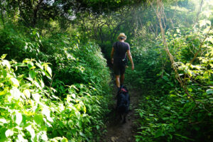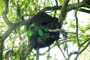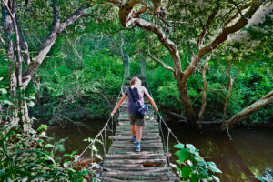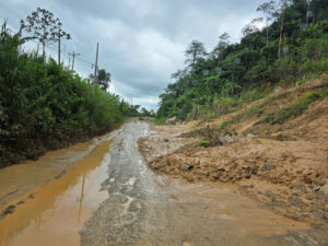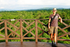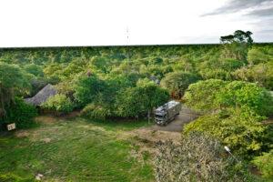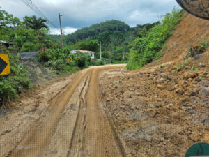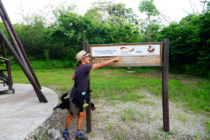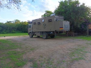 Auch für uns steht heute der Abschied vom Cabañas y Camping Yanuncay an. Nachdem das MANle reisefertig beladen ist, füllen wir noch einmal Wasser auf und verabschieden uns von unserem Gastgeber. Leider vergesse ich unser Eingangstreppe einzufahren und ramme diese mit voller MAN Power in das Eingangstor. So eine Aktion überlebt die Tür nicht und nun hängt sie mit gebrochenen Streben und Bolzen unter dem MANle. Das wird eine Großbaustelle, bis das wieder gerichtet ist. Auch die Ruta 59 gibt sich mit vielen Erdrutschen und kurzfristigen Stecken Sperrungen die Ehre. Doch alles in allem kommen wir gut durch und erreichen unser Ziel, das Reserva Ecológica Arenillas am späten Nachmittag. Die letzten 4 Kilometer sind mal wieder so richtig spannend, denn die Piste ist gerade mal so breit wie das MANle und wir sind quasi ständig mit dem Astabweiser am Räumen. Doch es gibt keine größeren Äste, die uns das Leben schwer machen und so kommen wir unbeschadet durch. Wir melden uns bei den Rangern an und da auch hier Zoras Emotional-Support-Dog-Ausweis gilt, darf sie sich auf dem Gelände frei bewegen. Nur auf den Wanderwegen muss sie an die Leine. Wir machen uns auch gleich auf den ca. drei Kilometer langen Weg durch den Dschungel. Dieser ist sehr matschig und wir sinken teilweise knöcheltief ein. Doch der Weg ist toll und wir sind inmitten unberührter Natur. Zwar könnten die Brücken etwas Pflege bekommen und teilweise müssen wir durchs Wasser waten, aber das schreckt uns nicht. Zora ist hier eh wieder in Ihrem Element und sobald das Rangerhaus außer Sicht ist, ist die Leine gekappt. Zora jagt eh nicht und verlässt den Weg nicht. Hier weicht Sie keine 20m von unserer Seite. Nachdem wir zurück sind, demontiere ich die gebrochenen Teile unserer Treppe und sichere den Rest mit Spanngurten. Es ist mit 32°C richtig warm und so hat keiner Appetit. Daher gibt es nur ein kleines Vesper. Anschließend sortieren wir unsere restlichen Lebensmittel für den Grenzübergang nach Peru. Um22:00 Uhr haben wir draußen immer noch 28°C. In der Kabine sind es über 30°C. Da die Batterien randvollsind lassen wir die Klima laufen. Schnell sind die Temperaturen im MANle angenehm und wir können gut schlafen. Zora hat den besten Platz, da die Kälte ja nach unten fällt hat sie unter den Tish einen Logenplatz.
