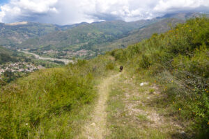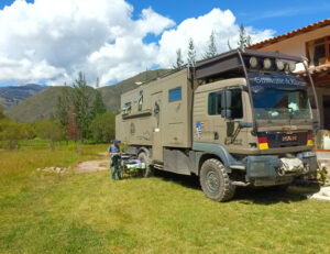 Susanne hat mit der Wanderapp eine Route in die Berge zusammengestellt, die wir heute in Angriff nehmen. Helga und Rainer sind sehr früh mit der Beta los, um die Lagunen hier abzufahren. Claudia und Thomas wollen heute weiter und so muss ich das MANle zur Seite fahren, damit Sie rauskommen. Nachdem sie weg sind, fahren wir auf Ihren Platz. Nun geht es los und schnell sind die wenigen Meter auf der Straße gelaufen und ein kleiner Pfad führt uns nun hoch in den Ort Pariahuanca. Wir laufen quer durch den Ort und kommen auf der anderen Seite an einer Mine vorbei und von hier aus geht es nun über einen Fahrweg rein in die Berge. Der Weg führt stetig nach oben ohne wirklich steil zu werden. Die Landschaft und die Aussicht, weit über das Tal ist toll. Für Zora gibt es immer wieder kleine Wasserläufe, wo Sie trinken kann. Hier in der Natur ist sie eh in ihrem Element und hat kaum Zeit für uns. Wir begegnen vielen Nutztieren, die hier in der kargen Region gehalten werden. Ziegen, Esel, Schweine, Kühe und natürlich vielen Hunden. Zora hat damit überhaupt keine Probleme mehr und läuft den Kühen durch die Beine.es sind über 13 Kilometer die wir gehen wollen und nach etwas mehr als 9 Kilometer haben wir den höchsten Punkt erreicht 430 Höhenmeter liegen hinter uns. Wir gönnen uns an einem kleine Bach ein Vesper und gehen nun für eine kurze Stecke auf eine Hochplateau bevor der Weg nun sehr steil bergab führt. Wir werden von einer lieben Farmerin eingeholt, die hier oben Ihre Felder bearbeitet hat. Das ist unser Glück den der Weg ist nun nicht mehr zu erkennen. Doch Sie geht ihn jeden Tag und so kommen wir sicher unten im Tal an. Wieder in Pariahuanca angekommen finden wir auch ohne Navi den Weg zurück zum MANle. Alle fallen erst mal in sich zusammen, denn es war doch anstrengender als gedacht. Auch Zora zieht es regelrecht die Füße weg und sie schläft schnell unter dem MANle ein. Nach dem die Kräfte etwas zurückgekehrt sind bereiten wir das Abendessen vor. Es gibt einen großen Rinderbraten mit Broccoli. Dieser muss nach dem Anbraten für 90 Minuten in den Backofen und bei kleiner Hitze durchschoren. Nur so wird das Flesch weich. Der Geruch bringt auch Zora auf trapp und so ist unsere Backofen gut bewacht. Wir essen gut, denn wir haben viele Kalorien verbraucht. Natürlich auch Zora, schließlich will auch Ihr Kalorienhaushalt ausgeglichen werden.