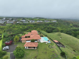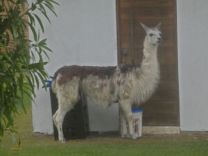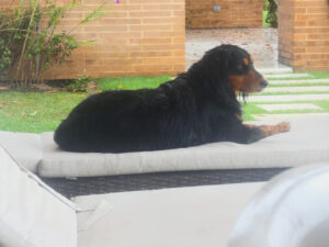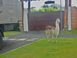 Auch Lina ist heute früh wach uns so trinken wir gemeinsam Kaffee. Auch Zora ist sehr früh auf und geht mit Petiochely, dem Haushund auf Tour. Die beiden sind ganz dick miteinander und verstehen sich sehr gut. Hier auf der Finca ist richtig was los. Mehre Pfaue, ein Lama und 14 kleine Ponys laufen frei herum. Zora kann es kaum fassen. Doch alle sind wehrhaft und halten die Hunde auf Abstand. Ich packe die Drohne aus und gehe auf Erkundungsflug. Erst aus der Vogelperspektive sieht man wie groß das Grundstück ist. Es beginnt wieder zu regnen und so gehen wir alle wieder ins Haus. Hier ist alles offen und die Hunde können uns überall hin folgen. Zora hilft Emma beim leeren des Frühstückstellers und auch sonst schweißt zu überall was ab. Keiner am Tisch kann Ihren Kulleraugen widerstehen. Am Nachmittag gehe ich mit Zora eine Runde um die vielen großen Anwesen hier. Nur rumsitzen ist nichts für uns. Doch alle Anwesen sind mit Hunden bewacht und so ist das wie ein Spießrutenlauf. Zora nimmt das alles sehr gelassen nur ein sehr großer, aufdringlicher Rhodesien Ridgeback will etwas Terror machen und wir müssen ihn deutlich in die Schranken weisen. Danach verläuft unsre kleine Wanderung deutlich entspannter und auf dem Rückweg ist nichts mehr von ihm zu sehen. Lindas Bruder hat in einem Smoker Grill Fleisch zubereitet und die Mutter hat tolles Spargelgemüse und Tintenfisch gemacht. Das alles wird auf Platten serviert und mit der Hand gegessen. Echt lecker. Auf der Fina gibt es einen Pool mit 37°C Wassertemperatur und Lina und Jorge lümmeln darin rum. Mir ist das zu warm und so bleibe ich draußen. Es wird hier abends recht kühl uns so gehe ich zum MANle zurück. Zora will nicht mitkommen, sie bleibt bei Petiochely.