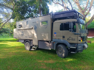 Heute nun heißt es Abschied nehmen von Kika. Anour ist ja nicht da und so können wir uns von Ihm leider nicht mehr verabschieden. Wir bezahlen unsere Rechnung und trinken mit Kika noch einen Kaffee. Der Abschied macht uns sehr traurig, denn auch hier haben wir uns sehr wohl gefühlt. Nachdem wir noch einen Gruß ins Gästebuch geschrieben und einen Sticker an den Kühlschrank geklebt haben verabschieden wir uns und fahren gemeinsam mit Elke und Axel los. Die Durchfahrt durch Piendamó ist wieder Mal spannend, denn die Straße ist gesperrt und es wurde eine Einbahnstraße kurzerhand für beide Richtungen freigegeben. Mega eng und zugeparkt. Doch wie immer geht es irgendwie und wir kommen ohne Flurschaden durch. Danach geht es auf die Pan Amerika mit ihrem großen LKW aufkommen weiter. Wir kommen nur langsam voran und die vielen chaotischen Baustellen drücken zusätzlich unsere Reisegeschwindigkeit nach unten. Wir erreichen unser angestrebtes Ziel bei weitem nicht und stoppen mein Parador Turistico Patia. Dieses sehr schöne Schwimmbad mit Restaurant und tollen Cabanas bietet auch einen schönen Stellplatz für Wohnmobile. Die gesamte Anlege ist gepflegt und wird von drei Hunden bewacht. Diese sind aber wahre Schmusebären und so gibt es keinen Stress mit Zora. Wir stürzen uns gleich nach der Ankunft ins Wasser und spülen den Stress des Fahrens runter. Damit das auch richtig wirkt gibt es ein feines Bier aus der Poolbar dazu. Das Restaurant bietet allerdings nichts, worauf wir Lust haben, und so kochen wir vor dem MANle. Da es hier viele Moskitos gibt, wird das eine kurze Angelegenheit. Zora geht noch mal mit den Hundekumpels eine Runde um den Platz und kommt wenig später auch zurück um Ihren Schlafplatz zu besetzten.