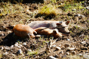 Für heute haben wir mit Paula eine Wanderung hier in den Bergen ausgemacht. Doch leider hat sich eine Reisegruppe angemeldet, die das ganze Haus für eine Woche mietet. Daher hat sie viel zu tun und muss leider absagen. Das ist nicht schlimm, wir haben die Route auf unsere App und können uns nicht verlaufen. In vollem Wanderoutfit starten wir los. Es sind rund 14 Kilometer und mehr als 500 Höhenmeter zu bewältigen. Duch das Dorf Tarica müssen wir einige Hund Gangs abwehren, die doch zu aufdringlich sind, doch anschließend geht es in die Berge und wir sind wieder allein unterwegs. Der Weg, den wir in die Berge gehen, wird auch von Fahrzeugen genutzt und so ist dieser nicht all zu steil, führt aber stetig nach oben. Gut fünf Kilometer gehen wir nur bergauf. Danach erreichen wir ein Hochplateau, welches uns einen herrlichen Panoramablick über die Täler und die breite Gebirgsfront der Cordillera Blanca bietet. Dank der vielen kleine Bäche hier, kann Zora immer trinken und sich abkühlen. Von nun an geht der Weg stetig wieder bergab. Wir machen nach gut 8 Kilometern unsere Vesperpause und strecken die Beine ein wenig aus. Hier auf diese Seite des Bergrückens ist das Gelände nicht so steil und es wird viel Landwirtschaft betrieben. Mit Wasserkanälen werden die kleinen Gebirgsbäche gefasst und über viele Kilometer zu den Felder geleitet. Mit Ochsen wir gepflügt und es ist viel Handarbeit beim Bestellen der Felder dabei. Nach gut drei Stunden sind wir wieder im Tal angekommen und laufen der Straße entlang zurück zum Campground. Heute hält der Sonnenschein länger an und so ruhen wir uns vor dem MANle aus und lassen uns von der Sonne aufheizen. Zora legt sich unter das MANle und schläft schnell ein. Da wir unterwegs nicht alle Vesperbrote aufgegessen haben holen wir das nun nach. Wir reinigen unsere Schuhe und räumen die Rucksäcke aus um sie anschließend aufzuräumen. Schnell vergeht so der Rest des Tages und da wir keinen großen Hunger haben essen wir nur die restliche Kürbissuppe auf.
