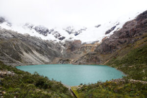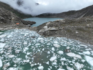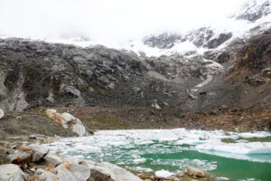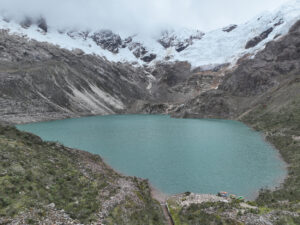 Heute nun klappt es, dass Paula mit uns geht. Wir wollen die Laguna Rocotoyok besuchen und sie erklärt sich breit mit Ihrem Auto da hinzufahren. Bereits um 07:00 Uhr starten wir, denn wir wollen das gute Wetter am Vormittag nutzen. Wir fahren auf der 3n bis Marcará und folgen von dort aus der 770 in die Berge. Durch den Bau einer neuen Brücke werden wir von der recht gut befahrbaren 770 auf eine Seitenstraße navigiert und die hat es mal so richtig in sich. Mehrer Male bleiben wir an den steilen mit üblen Schlaglöchern gespickten Passagen hängen und brauchen mehrere Anläufe, um diese zu meistern. Ich steige aus, um Paula den Weg durch die Löcher zu weisen und da Sie die Anweisungen gut umsetzt, kommen wir überall durch. Als wir wieder auf der 770 sind, geht es besser voran. Erst als die kleine Stichstraße hoch zur Lagune abzweigt wird es wieder spannend. Über viele Serpentinen windet sich die Straße steil hoch Doch an den ganz steilen Sellen sind Betonspuren errichtet und so bleiben wir nicht stecken und kommen wohlbehalten auf den recht großen Parkplatz an. Von hier sind es nur noch rund 200m zur Lagune. Ich habe meine Drohne mitgenommen und fliege um die Lagune um ein paar Bilder zu machen. Anschließend machen wir uns auf dem kleine Trail auf, um direkt zum Gletscher zu laufen. Es sind nur rund 800m dahin, doch in der Höhenluft bei 4600m merkt man jeden Schritt. Auch dort lasse ich meine Drohne fliegen und die Eindrücke hier direkt am Gletscher im Bild festzuhalten. Wir haben echt Glück mit dem Wetter, doch nun sieht es nach Regen aus und so laufen wir zurück zum Auto. Nur auf den letzten Metern holt und das Wetter ein, doch bevor es richtig losgeht, sitzen wir bereits im Auto. Zora hat die Tour ganz schön geschafft, sie schläft sofort im Auto ein. Die Rückfahrt ist wesentlich entspannter und so kommen wir gut zurück auf die 3N. Bei Verwandten von Paula essen wir zu Mittag und fahren auch noch zu einem kleinen Supermarkt, wo wir 6 Flaschen a 7Liter Trinkwasser kaufen. Diese sind mit dem Auto einfach leichter zu transportieren. Mein MANle angekommen, setzt Regen ein und schnell gehen wir rein. Paula will eh unseren Wohnraum sehen und so setzen wir uns bei Kaffee und Keksen an den Tisch. Sie muss aber noch Ihre Mutter in Huaraz abholen und so muss Sie wieder los. Ich kümmere mich um die Flut der gemachten Bilder und löse mein Versprechen ein, diese alle a Paula zu schicken. Das Abendessen fällt aus, da wir ja sehr gut und viel gegessen haben.