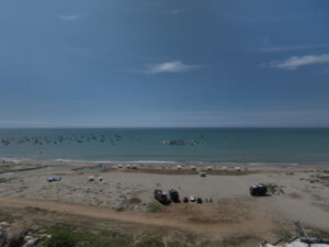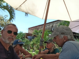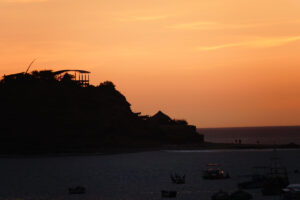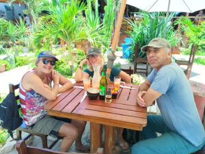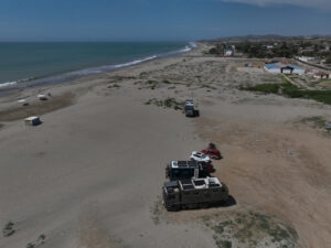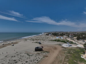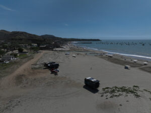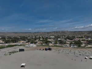 Heute nun verlassen wir diesen schönen Ort am Strand, um zum ca. 83 Kilometer entfernten Ort Organos zu fahren. Dort haben Susanne und ich einen Tauchtag gebucht. Die Pam Amerika ist hier in Peru der Küste entlang in einemüblen Zustand und so müssen wir es langsam angehen lassen. Dennoch sind wir bereits zur Mittagszeit am Ziel und obwohl der Strandparkplatz mitten im Ort ist, können wir hier ungestört übernachten. Die wenigen Besucher stören uns nicht. Wir stellen unsere Truck gegeneinander, so entsteht unter der Markise ein Art Innenhof, der uns gut abschirmt. Zora will sofort an den Strand, denn dort wimmelt es von Hunden. Wir lassen Sie laufen und gönnen Ihr den Spaß. Erst als wir uns aufmachen ins Restaurant zu laufen schließt sie sich wieder dem Team an. Das servierte Essen ist sehr gut und die Portionen sind sehr üppig. Nicht zu vergleichen mit Ecuador, wo man quasi immer hungrig vom Tisch aufgestanden ist. Am späten Nachmittag gehen Susanne und ich zur Tauchbasis, damit wir morgen wissen, wo wir hinlaufen müssen. Denn bereits um 07:00 Uhr sollen wir dort sein. Da wir sehr gut zu Mittag gegessen haben verzichten wir auf das Abendessen und setzen uns mit einen Getränk bewaffnet an den Strand und genießen den spektakulären Sonnenuntergang.
