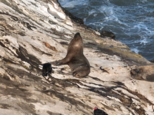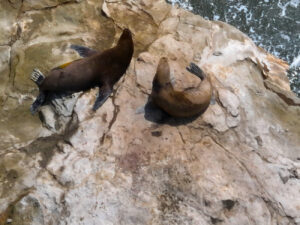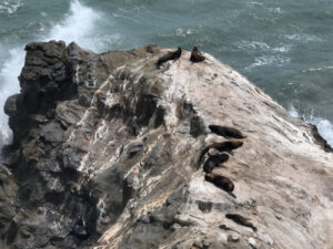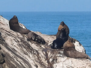 Heute nun geht es weiter der Pazifikküste entlang zum westlichsten Punkt von Südamerika. Dort am Punta Balcones wollen wir Mähnenrobben beobachten. Gerade mal 81 Kilometer sind es bis dahin. Doch die Ruta 101 zwingt uns eine mäßige Fahrweise auf. Selten geht der Tacho über 60km/h. Doch wir haben ausreichend Zeit, um auch noch einen notwendigen Supermarktbesuch in Talara zu machen. Denn auf unserer weiteren geplanten Route entlang der leinen Sandpisten wird es erst mal keine weiteren Supermärkte geben. So decken wir uns gründlich mit allem ein und auch 42l Trinkwasser bunkern wir. Sofort nach den Ankunft starten wir eine Wanderung zu den Mähnenrobben. Hierzu erklimmen wir eine vorgelagerte Klippe, die auch mit ihrer keinen Stehle den westlichsten Punkt von Südamerika markiert. Von hier aus haben wir einen tollen Blick auf die hier ansässige Mähnenrobbenkolonie. Um noch etwas näher ranzukommen, starte ich nach der Rückkehr zum MANle die Drohne und fliege rüber. Doch die Robben reagieren zu stark auf das Drohnengeräusch und so fliege ich vielhöher und setze das gute Zoom der Drohne ein. Nun kehrt ruhe ein in der Kolonie und ich kann in Ruhe meine Bilder machen. Auch Patrick gesellt sich wenig später zu uns. Am späten Nachmittag machen sich Susanne, Zora und ich auf den Weg zum Faro Pariñas, einem alten Leuchtturm, der aber immer noch im Dienst ist. Nach der gut 4 Kilometer langen Wanderung am Strand entlang sind die Beine schwer und wir sind froh nur ein fertiges Grillhähnchen in den Ofen schieben zu müssen. Mit etwas frischem Salat dazu ist das Abendessen schnell erledigt. Helga hat Reis dazu abgekocht und Rainer im Wog Gemüsegedünstet. Es kommen noch einige Tagesgäste, doch als die Sonne unter gegangen ist herrscht absolute Stille. Nur das Rauschen des Ozeans ist zu hören. Auch hier erleben wir einen farbenprächtigen Sonnenuntergang.
