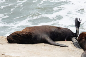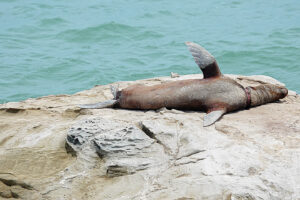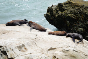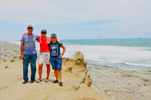Heute nun geht es weiter der Pazifikküste entlang zum westlichsten Punkt von Südamerika. Dort am Punta Balcones wollen wir Mähnenrobben beobachten. Gerade mal 81 Kilometer sind es bis dahin. Doch die Ruta 101 zwingt uns eine mäßige Fahrweise auf. Selten geht der Tacho über 60km/h. Doch wir haben ausreichend Zeit, um auch noch einen notwendigen Supermarktbesuch in Talara zu machen. Denn auf unserer weiteren geplanten Route entlang der leinen Sandpisten wird es erst mal keine weiteren Supermärkte geben. So decken wir uns gründlich mit allem ein und auch 42l Trinkwasser bunkern wir. Sofort nach den Ankunft starten wir eine Wanderung zu den Mähnenrobben. Hierzu erklimmen wir eine vorgelagerte Klippe, die auch mit ihrer keinen Stehle den westlichsten Punkt von Südamerika markiert. Von hier aus haben wir einen tollen Blick auf die hier ansässige Mähnenrobbenkolonie. Um noch etwas näher ranzukommen, starte ich nach der Rückkehr zum MANle die Drohne und fliege rüber. Doch die Robben reagieren zu stark auf das Drohnengeräusch und so fliege ich vielhöher und setze das gute Zoom der Drohne ein. Nun kehrt ruhe ein in der Kolonie und ich kann in Ruhe meine Bilder machen. Auch Patrick gesellt sich wenig später zu uns. Am späten Nachmittag machen sich Susanne, Zora und ich auf den Weg zum Faro Pariñas, einem alten Leuchtturm, der aber immer noch im Dienst ist. Nach der gut 4 Kilometer langen Wanderung am Strand entlang sind die Beine schwer und wir sind froh nur ein fertiges Grillhähnchen in den Ofen schieben zu müssen. Mit etwas frischem Salat dazu ist das Abendessen schnell erledigt. Helga hat Reis dazu abgekocht und Rainer im Wog Gemüsegedünstet. Es kommen noch einige Tagesgäste, doch als die Sonne unter gegangen ist herrscht absolute Stille. Nur das Rauschen des Ozeans ist zu hören. Auch hier erleben wir einen farbenprächtigen Sonnenuntergang.