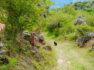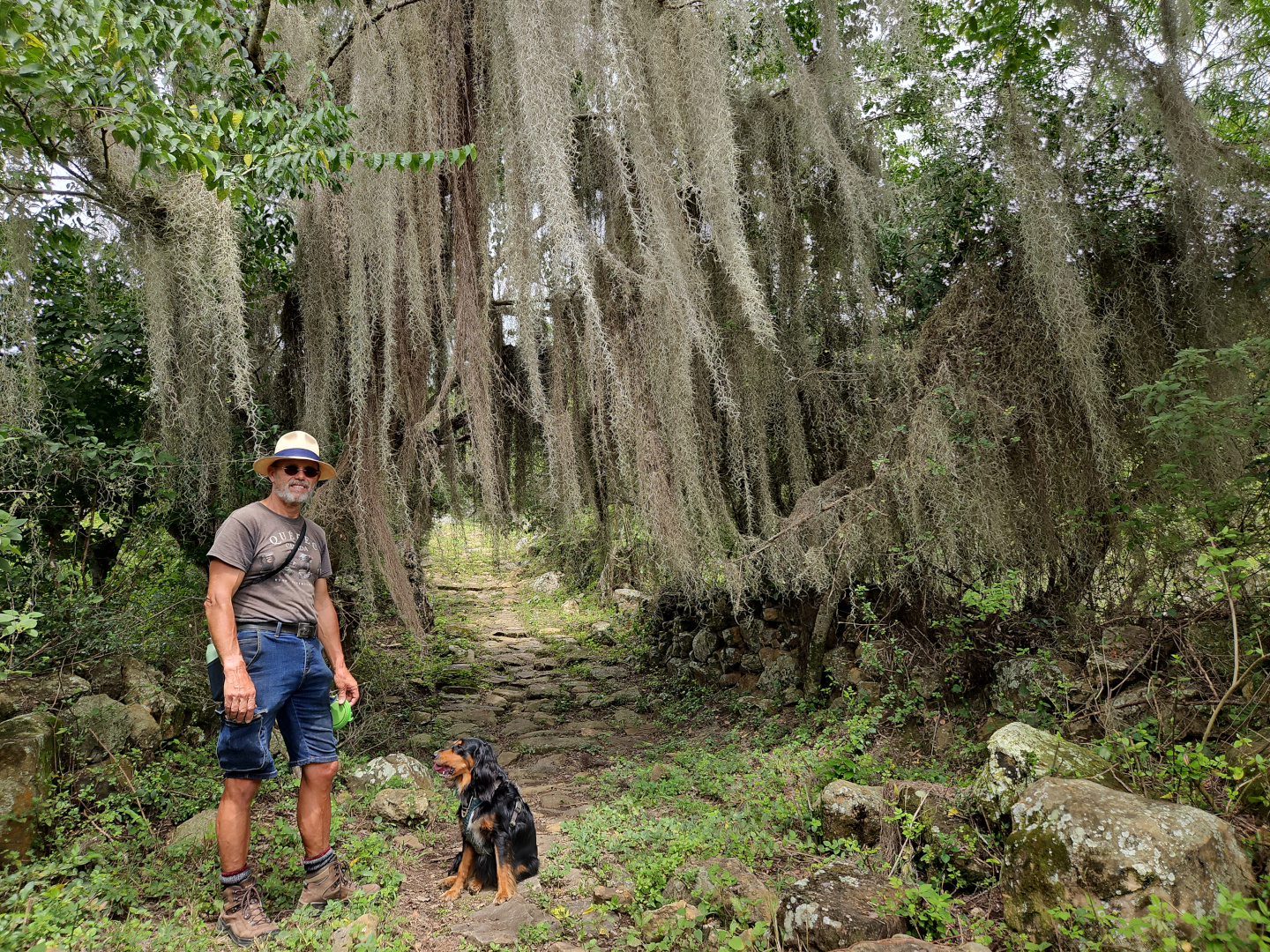 Susanne möchte heute zum Ort Cuame wandern. Die Ausgesuchte Strecke ist über 13 Kilometer lang und so starten wir früh am Morgen, damit wir der Hitze noch etwas aus dem Weg gehen. Annette und Bernd verabschieden sich, sie wollen noch etwas in der Karibik Sonne tanken, bevor es wieder nach Hause geht. Unser weg ist Teil des Camino Real, eines sehr alten mit großen Steinen ausgelegten Weges. Nach 6 Kilometer erreichen wir das Dorf Cuame und gönnen uns dort einen süßen Fruchtsaft und Susanne schiebt noch ein Stück Schokoladenkuchen hinterher. Auch der Rückweg folgt dem Wanderpfad und so treffen wir nach weiteren 5 Kilometer auf die Ruta 64. Diesen müssen wir nun 500m folgen, bevor wir auf die Zufahrtsstraße zum Campground treffen. Es sind nun weiter 2 Kilometer bis die Auffahrt zum Campground erreicht ist. Als wir die Ruta 64 erreichen treffen wir einen Pinscher Welpen, der uns nun folgt. Er hat in Zora eine neue Mama gefunden und folgt Ihr nun überall hin. Als wir den Campground erreichen wird die Sache spannend, den Phönix, der Campgroundhund ist nicht sehr freundlich zu fremden Hunden. So lassen wir den kleinen am Eingangsgatter zurück. Doch schnell findet er einen Weg außenherum und ist keine 2 Minuten später bei uns. Wieder legt er sich neben Zora und ist wohl sehr glücklich. Doch dann erscheint Phönix und die Sache spitzt sich zu. Überraschender Weise verteidigt Zora den kleinen und Phönix zieht den Schwanz ein und geht auf Abstand. Er traut sich nun nicht mehr in unsere Nähe. Allerdings ist der kleine sehr aufdringlich und als es die Stufen des MANle erklimmt, ist auch bei Zora Schluss mit lustig. Deutlich in die Schranken gewiesen hält er nun Abstand und bekommt von Susanne Wasser und Futter. Doch das Trockenfutter kennt er nicht und daher muss Susanne Ihn aus der Hand füttern. Das klappt dann auch ganz gut und schnell hat der Kleine den Bogen raus. Als am später am Abend Jupp kommt klären wir Ihn über den Sachverhalt auf. Er nimmt sich des kleinen an und bringt Ihn zurück wo er hergekommen ist. Obwohl wir sehr müde sind, bereiten wir ein gutes Abendessen mit Reis und Gemüse zu. Dazu gibt es Rindfleisch und Grillwürste. Auch Zora greift tüchtig zu, gebratenes Rindfleisch steht nun mal bei Ihr ganz oben auf der Lieblingsliste.