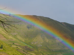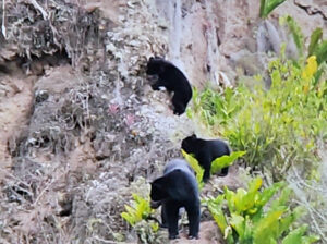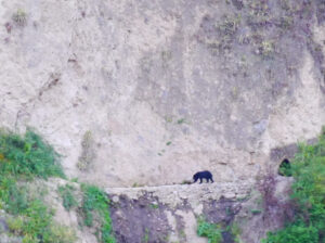 Wir wollen noch einen weiteren Tag hier verbringen, um die Bären zu beobachten. Daher sind wir schon um 06:30 Uhr am Mirador, um nach Bären zu schauen. Wir werden belohnt und ein Bär zeigt sich schon früh über dem vorgelagerten Bergkamm Doch Zora ist sehr unruhig und so gehe ich mit Ihr nach ca. einer Stunde zurück. Alle gemeinsam schauen wir noch einen Informationsfilm über die Arbeit der Bärenschützer hier an. Da das Gelände hier sehr steil ist, haben diese bei Ihren Erkundungstouren einen echt schwierigen Job. Ich spiele mit Zora noch eine kurze Zeit, doch sie ist müde und will nicht so recht mitmachen. Auch im MANle legt sie sich gleich hin und will Ihre Ruhe. Das ist sehr ungewöhnlich und wir müssen sie daher gut beobachten. Am späten Vormittag kommt die Sonne raus und der Tag wird sehr freundlich. David fährt los, da er nicht auf Bezahlplätzen stehen will. Ich kippe das Fahrerhaus und reinige den Luftfilter des MANle. Dieser ist sehr schmutzig und hatte es bitter nötig. Anschließend reinige ich den Wasserkühler. Hierzu nehme ich den Wasserschlauch und halte mehrere Minuten den Wasserstrahl an den Kühler. Anschließend blase ich mit der Druckluftpistole alles sauber. Das wiederhole ich noch mal und starte anschließend den Motor. Ich kann sehr deutlich den Luftstrom spüren und bin überzeugt, dass der Kühler sauber ist. Da eine der Kabelgleitschienen immer mal wieder am Astabweiser hängen bleibt, andere ich die Befestigung, um das zu verhindern. Ich fülle noch unsere Wasserbehälter und anschließend wandern wir noch eine Runde, um die atemraubende Landschaft in uns aufzusaugen. Um vier Uhr ist es wieder Zeit zu den Bären zu gehen. Dieses Mal haben wir wirklich Glück und wir sehen gleich fünf dieser tollen Tiere. Das absolute Highlight ist der Bär, der auf der Mauer des Wasserkanals hin und her läuft, als wäre es ein Laufsteg. Auch zwei Jungtiere sehen wir die wild miteinander spielen. Trotz der steilen Hänge ist eine wilde Rauferei im Gange und nicht selten stürzen die beiden eine Etage tiefer. Ich gehe etwas früher als Susanne und verpasse noch zwei weitere Bären. Bis Susanne zurückkommt habe ich das Abendessen fertig und sie kann gleich zum Essen übergehen. Elke hat eine sehr leckere Zwiebelsuppe gekocht und auch davon bekommen wir einen Teller ab. Bevor wir rein gehen, räume ich das MANle komplett ein, da wir morgen zur Finca Sommerwind fahren wollen. Wir hoffen, dass die Erdrutsche alle beseitigt sind. Zora hat noch einmal richtig was zu tun, denn es kommen gleich vier Hunde zu Besuch. Unser Abendessen hat sie wohl alle angelockt. Doch alles geht ohne Stress ab und Zora ist das Nesthäkchen. Nachdem alle weg sind, kann auch Zora reinkommen.