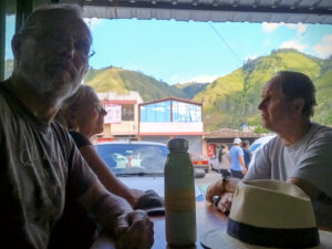 Heute ist nun also der Tag, der für unsere weitere Reise sehr wichtig ist. Ich mache mich auf den Weg, um die eingebauten Teile zu testen. Ich muss aber erst mal das MANle reisefertig machen und auch draußen alles aufräumen. Das MANle startet bereitwillig und so geht es los. Zuerst fahre ich eine Runde um die Lagune um langsam anzufangen. Alles läuft gut und so wage ich mich raus auf die Ruta E35vund fahre den gesamten Berg ca. 25 Kilometer runter, um den ultimativen Test den Berg rauf zu machen. Mit 55 Km/h bei 1700 U/min geht es den Berg rauf. Wieder geht die Themperaturanzeige etwas über den Mittelstrich hinaus bis der Lüfter seine gehöhte Drehzahl aufnimmt. Ich fahre bewusst so, damit ich sehe ob wieder Kühlflüssigkeit aus den System gedrückt wird. Das habe ich erwartet, schließlich haben wir an der Ansteuerung des Lüfters nichts geändert. Nun schalte ich den Lüfter manuell zu und die Themperaturanzeige fällt exakt auf den mittleren Strich. Auch etwas forschere Gangart lässt sie dort wir angenagelt verharren. Als ich oben ankomme, ist die Temperatur im optimalen Bereich geblieben. Zurück auf dem Parkplatz auch Entwarnung von der Kühlmittelflasche. Sie ist trocken und kein Tropfen Kühlflüssigkeit hat den Kühlkreislauf verlassen. Nun kann ich auch wieder ca. 2 Liter Kühlmittel nachfüllen und habe somit die vorgegebene Füllmenge erreicht. Das MANle hat so unter schwierigen Bedingungen seinen Test bestanden und wir können nun unbesorgt weiterfahren. Bille und Thomas wollen ins Dorf laufen und da gehen wir gerne mit. Zora braucht Auslauf und auch mir tut es gut nach der ganzen Anspannung. Wir trinken einen feinen Orangensaft und lassen das bunte Treiben des Dorfes am Sonntag auf uns wirken. Da wir heute bei Hans im Restaurant essen bleibt die Küche kalt. Erleichtert über die erfolgreiche Reparatur falle ich müde ins Bett. Auch Zora geht gleich mit und will auch nicht mehr runter.