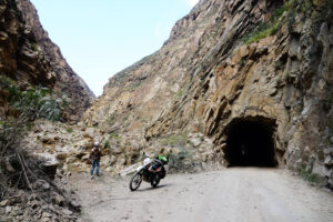 Es soll heute ein sonniger Tag werden und so beschließen wir zum Cañyon del Pata zu fahren. Ich mache die Beta fertig und wir packen noch ein Vesper ein. Es sind nur 30 Kilometer zum Eingang des Canyons und die N3 ist hier nicht recht gut ausgebaut. So erreichen wir schnell die Schlucht und die ersten Tunnel, für die dieser Canyon berühmt ist. Mit der Beta können wir überall zwischen den Tunneln stehen bleiben und alles genau anschauen. Es ist eine große Herausforderung mit der Beta vom gleisenden Sonnenschein in die stockdunklen Tunnel zu fahren. Das Friedhofslicht der Beta macht das nicht besser. Aber wir kommen dennoch gut durch und am Ende der Schlucht drehen wir um. Immer wieder halten wir an, um diese atemraubende Schlucht anzuschauen. Wir sind froh nicht mit dem MANle gefahren zu sein. Die Tunnel hätten wir wohl alle gemeistert, aber an einer Felsennase wären wir definitiv nicht vorbeigekommen. Denn genau an der Stelle ist auf der gegenüber liegenden Seite die Straße weggebrochen und um dem Felsen auszuweichen ist es für uns dann doch zu schmal. Haben wir auf der ganzen hinfahrt durch den Canyon nicht ein Fahrzeug gesehen so kommen uns auf der Rückfahrt tatsächlich zwei LKW´s entgegen. Diese sind zwar länger als wir, aber eben nicht so hoch. Unbeschadet erreichen wir wieder die asphaltierte Straße und kommen nun auch schnell zum MANle zurück. Unterwegs tanken wir noch die Beta auf, damit wir wieder voll einsatzfähig sind. Zora freut sich und als Jaime uns sieht bringt er seine Hunde rein und wir können mit Zora draußen spielen. Ich schiebe das Hähnchen zum Aufwärmen in den Ofen und Susanne bereitet einen Salat zu. Zora platziert sich unter dem Tisch, um ja nichts zu verpassen. Das Hähnchen kommt wie frisch gegrillt aus dem Backofen und ist schön knusprig. Es ist auch sehr groß und so schaffen wir das nicht auf einmal. So bleibt noch viel weißes Fleisch für Zora übrig. Da wir morgen weiterfahren wollen packe ich alle unsere Sachen zusammen. Bevor die Beta auf die Hebebühne kommt, sprühe ich die Kette noch mit Kettenfett ein. So hat es Zeit gut zu haften. Auch unsere Wassertank fülle ich nach, damit wir für die Tage in den Bergen gut gerüstet sind. Damit über Nacht nicht der Tau wieder feucht macht, räume ich auch Tische, Stühle und unseren Teppich ein. Susanne hat noch gewaschen und so kommt die Wäsche als letztes von der Leine und wird auch aufgeräumt.