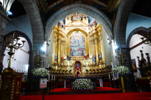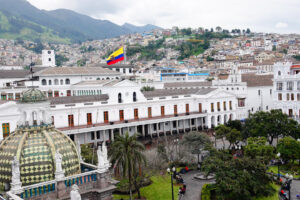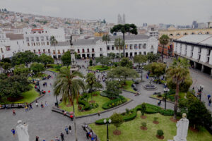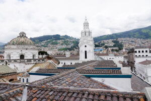 Heute wollen Suanne, Silvia, Berd und ich die Stadt besuchen. Daher blödeln wir eine Weile mit Zora rum, da sie anschließend lange Zeit im MANle verbringen muss. Das stört sie aber überhaupt nicht, Hauptsache sie ist in Ihrer gewohnten Umgebung. Das Taxi bringt uns direkt in die Innenstadt auf den großen zentralen Platz. Wir sind erstaunt, was hier auf den Straßen alles angeboten wird. Unser erster Anlaufpunkt ist die Iglesia y Convento de San Franisco. Alle außer mir wollen diverse Kirchen besichtigen. Ich laufe da schnell mal durch und warte dann draußen auf die anderen. Zur Mittagszeit gehen wir ins Restaurant und gönnen uns ein sehr gutes, wenn auch etwas teures Mittagessen. Anschließend laufen wir zur Basilika del Voto Norte. Da wir Zora schon lange allein gelassen haben, trennen wir uns von Sylvia und Bernd und fahren mit einem Uber zurück zum Campground. Wir wollen ja morgen noch einmal allein in die Stadt und Susanne will noch einmal diese Kirche besichtigen. Als wir zurück beim MANle sind, kommen Aude und Christoff aus Frankreich mit Ihrem Fiat Duato an. Sie haben auf einer Holperpiste Ihren Unterfahrschutz eingedrückt. Nun schabt Metall auf Metall und verursacht üble Geräusche. Daher bauen wir diesen ab und dengeln die dellen mit meinem großen Abbruchhammer wieder aus. Das geht sehr gut und vorsorglich tapen wir die Kontaktstellen noch mit Armaflex Klebeband um sicher zu sein, dass das Metall sich nicht berührt. Nach einer kurzen Probefahrt zeigt sich, dass nun alles wieder in Ordnung ist. Da wir bereits in der Stadt gegessen haben, fällt das Abendessen aus und so sitzen wir mit Bruce gemeinsam vor das MANle und trinken noch ein Feierabendbier.