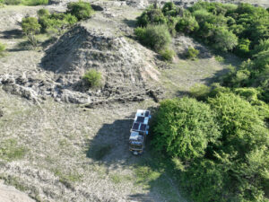 Der Tag begrüßt uns recht freundlich uns so sind wir früh auf den Beinen. Wir wollen heute zur Tatacoa Wüste fahren und daher starten wir früh los. Die Straße bis zur Abzweigung in die Wüste ist oft zweispurig ausgebaut und so kommen wir gut voran. Wir fahren mit stetigem Gefälle auf unter 400 Höhenmeter hinunter. Erst als wir Richtung Fähre fahren wird die Piste schmal und bei Gegenverkehr heißt es eine passende Stelle zu finden. Es gibt hier tatsächlich drei Fähren in unterschiedlicher Größe. Da ist auch was für uns dabei und schnell haben wir den Rio Magdalena überquert. Nun geht es langsam richtig rein in die Wüste. Das Thermometer zeigt 35°C an und wir sind froh um unsere gute Klimaanlage im Fahrerhaus. Wir fahren langsam, denn die Landschaft bietet großartige Fotomotive. In La Viktoria besuchen wir das kleine, aber sehr feine prähistorische Museum. Unser Guide lebt mit samt seiner ganzen Familie für die Ausgrabungen und das Museum hier. Anschließend fahren wir weiter und nehmen die schmale Abzweigung, die uns zu den zu der grauen Wüste führt. Wir folgen gut eine Stunde der schmalen Piste und suchen uns einen schattigen Übernachtungsplatz. Der ist hier draußen leicht zu finden und so können wir uns weit ab von jeglicher Zivilisation mitten in die Wüste stellen. Ich gehe mit Zora auf Erkundungstour in der näheren Umgebung Doch bei der Hitze hat keiner so richtig Lust und daher tauschen wir den Wanderstock gehen kühle Getränke. Es kommen noch drei Esel vorbei und sich recht neugierig. Wir breiten unser Abendessen wieder draußen zu doch da die Mücken hier auf Beutezug sind müssen wir uns schnell rein verkriechen. Dank mobiler Ventilatoren können wir für ordentlich Durchzug sorgen und so die Hitze erträglich machen.
