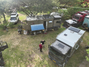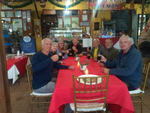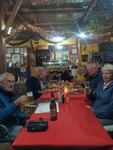 Es regnet heute früh und so sind erst mal alle Aktivitäten eingestellt. Auch Zora hat keinen Bock rauszugehen. Als dann am späten Vormittag der Regen aufhört starten wir in den Tag. Ich fülle unseren Wassertank wieder auf, der nach einem Waschtag ziemlich leer ist. Da unser Konverter über Nacht im Regen stand schraube ich ihn auseinander und trockne ihn, bevor ich ihn wieder in Betrieb nehme. Er funktioniert einwandfrei und so lasse ich unsere MANle am Landstrom angeschlossen. Elke und Axel wollen in die Stadt fahren und wir beschließen mit Ihnen zu fahren. Schnell ist die Beta von der Hebebühne geholt und einsatzbereit. Zuverlässig läuft sie sofort an und der Motor nimmt seinen Betrieb auf. Es sind nur wenige Kilometer ins Stadtzentrum. Doch es ist sehr viel los in der Vorweihnachtszeit. Glücklicherweise finden wir gute Parkplätze mit den Motorrädern. Wir laufen durch die großen Einkaufsmalls und staunen etwas über das sehr gute Angebot an europäischen Produkten. Hier kann man tatsächlichen fast alles kaufen. In einer Farmacia füllen wir unsere Vorräte an Schmerzmittel auf und können auch Magnesium und Calcium mitnehmen. Da ich meine ½ “Ratsche beim Einbau der Motorhalterung abgerissen habe, kaufe ich hier in einem Werkzeugladen gleich eine neue. Unsere letzte Offroadfahrt hat wieder zwei unserer Teller zerstört. Wir finden hier sehr schöne bruchsicher Teller und daher decken wir uns hier auch mit neuem Geschirr ein. Axel lässt sich die Haare schneiden und in der Zeit kaufen wir für Susanne neue kabellose Kommunikationsgeräte für die Ohren. Nachdem alles, was wir brachen an Bord ist, fahren wir zurück. In der Zwischenzeit sind Michell und Caroline mit ihrem Bimobil auf Mercedes Ateco angekommen. Sie stellen sich uns gegenüber auf und Zora hat sofort erkannt, dass Caroline eine Hundenärrin ist. Sie ist gleich Feuer und Flamme mit Ihr. Alle gemeinsam gehen wir zum Abendessen runter ins Restaurant und bilden einen großen Tisch. Auch Silva, Peer, Manuela und Phillip gesellen sich im Laufe des Abends zu uns. Wir gönnen uns erst mal einen Glühwein, der sehr lecker schmeckt. Alle haben mit mehr oder weniger schweren Defekten zu kämpfen und so geht der Gesprächsstoff nicht aus. Wir bleiben noch bis alle gegessen haben und gehen dann zurück zum MANle. Auch Zora ist müde von vielen herumstreunen auf dem Platz. Sie will gleich ins Bett.