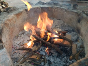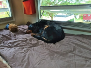 Wieder Regen beim Aufstehen und dieses Mal hält er dauerhaft an. Ein klarer Fall für Arbeiten drinnen. Heute ist auch der Tag der Abschiede. Erst gehen Lui und Soy mit Ihrem Mercedes LKW und anschließend gehen auch Bille und Thomas. Wenig später zieht auch David weiter. Nachdem alle verabschiedet sind, kümmere ich mich als erstes um die ganzen stumpfen Messer. Diese zu schärfen habe ich schon geraume Zeit nicht mehr gemacht und entsprechend aufwendig ist die Angelegenheit. Nächster Halt, Ameisen auf der Küchenarbeitsplatte. Ich mache mich auf die Suche, um deren Unterschlupf zu finden. Dieser ist in einer alten Tüte Hundeleckerli und so sind sie schnell beseitigt. Da es nun auch Tagsüber recht kalt ist, beschließen Victoria und ich für den späten Nachmittag ein Lagerfeuer zu machen. Da nur noch große Holzstücke da sind hole ich Säge, Beil und Hammer heraus und mache passende Scheite. Das ist aufwendig, da das Holz sehr viele Astgabelungen hat. Während ich arbeiten kommen zwei junge Paare an, die sich auf die freien Plätze mit gegenüber aufstellen. Wie bei den jungen Leuten heute üblich gibt es keine Begrüßung oder ein freundliches Hallo. An mir geht das mittlerweile sowas von vorbei, dass ich das komplett ignoriere. Am späten Nachmittag starte ich das Grillfeuer und bereite das Abendessen zu. Da Victoria Vegetarierin ist, mache ich in Olivenöl gebackene Karotten dazu. Auch meine restlichen gegrillten Bohnen gibt es dazu. Auch unser kanadischer Freund gesellt sich zu uns. Ich ziehe die Glut auseinander und grille auf meinen kleinen Dreizack Grill mein Fleisch. Das ist superschnell gemacht und das Lomo De Fino schmeckt köstlich. Die kräftige Glut hat eine perfekte Hitze zum Grillen. Anschließend legen wir wieder Holz nach, da es doch mit 12°C recht kalt geworden ist. Nachdem dennoch allen etwas kalt geworden ist, packen wir zusammen und gehen alle heim. Ich mache gleich den Abwasch und räume noch etwas auf. Da ein Eis immer geht gönne ich mir noch eine Portion mit Sprühsahne. Zora ist trotz des Regens noch auf der Anlage unterwegs und kommt erst sehr viel später zurück. Nachdem ich sie einigermaßen abgetrocknet habe, darf sie ins Bett. Schnell rührt sie sich nicht mehr.