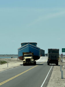 Nachdem die Luft in den Reifen angepasst ist und alles sicher verstaut ist machen wir uns auf den trickreichen Rückweg aus dem Reserva Nacional Illescas. Die Piste ist staubtrocken und bis auf die großen Schlaglöcher ganz gut zu befahren. Die steilen Passagen sind mit Geröll übersät, was etwas Vorsicht verlangt. Auch die engen Serpentinen schaffen wir nicht auf einmal und müssen rangieren. Zum Glück kommen uns keine Fahrzeuge entgegen und so kommen wir gut durch den engen Tunnel. Nachdem wir die sehr gut ausgebaute Pista 04 erreichen, kommen wir gut voran. Auch die N1 zurück Richtung Piura ist sehr gut zu befahren. Der Tempomat steht auf 70km/h und das MANle rollt mit knapp 25l/100km gemütlich vor sich hin. Ab und zu müssen wir einen langsameren LKW überholen, doch das ist auf der bolzengeraden Straße keine Herausforderung. Hier werden große Schiffe auf LKW´s transportiert und da ist es besser, wenn man von der Straße runterfährt. Bremsen können diese Transporte nämlich nicht. In Piura ändert sich das aber gewaltig. Dichter Verkehr unzählige Tuk-tuks und chaotische Verkehrsführungen machen unser Fortkommen schwer. Nach einigen mühevollen Kilometern erreichen wir unser Zeil den Campingplatz Porta Verde. Helga, Susanne und Rainer machen sich auf zu Supermarkt und ich bleibe mit Zora hier, um nötige Kleinarbeiten abzuarbeiten. Wichtig ist mir die Kontrolle des Achsöls. Wenn nichts mehr rausläuft, kann ja auch der Grund sein, dass nichts mehr drin ist. Doch der Ölstand ist korrekt und auch das Motoröl und der Kühlflüssigkeitsstand sind seit der letzten Kontrolle unverändert. Ich reinige die Zuluftfilter und widme mich dann unserem Eingangs Plissee. Zora hat mal wieder etwas zu heftig daran gezogen und es aus den doppelten Klebeband gezogen. Das ist aber schnell geheilt und so müssen die Moskitos wieder draußen bleiben. Als die Einkaufstruppe zurückkommt, sind auch ein paar neue Crocs für mich dabei. Die alten fliegen sofort in den Müll. Alle gemeinsam gehen wir eine kurze Runde schwimmen und anschließend ins Restaurant zum Abendessen. Als wir zurückkommen, ist die Moskitos Armada zu heftig, um draußen zu sitzen. Daher gehen wir alle rein, um uns auszuruhen. Der Tag war anstrengend und daher gehen wir müde ist Bett.