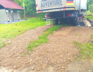 Wir haben John gebeten uns nach Pereira zu fahren und uns auf unseren Behördengängen zu begleiten. Susannes Handy wurde ab Ihrem Aufenthalt in Deutschland von Claro gesperrt, da was als gestohlen eingestuft wurde. Dies lässt sich nur bei Claro in Pereira entsperren. Pünktlich wie immer holt John uns ab und er kennt sich bestes in der Stadt aus und kennt nahe der SOAT eine Tiefgarage wo wir das Auto abstellen. Es ist nur ein Blok bis zur SOAT und als wir ankommen ist das Büro leer. So kommen wir sofort dran und können unsere Papiere abgeben. Bezahlen geht nur online mit kolumbianischer Kreditkarte oder auf der Bank Bogota. Diese Bank befindet sich ebenfalls hier im Zentrum, nur wenige Gehminuten entfernt. Man muss eine Nummer ziehen und auf den Aufruf warten. Doch auch dies dauert nur wenige Minuten und in der Zeit plündere ich den Geldautomaten, da wir ja unsere Polster bezahlen müssen und auch sonst noch einiges zu besorgen haben. Nachdem die Bezahlung erfolgt ist, bekommen wir per E-Mail unsere Policen zugesendet. Auch die Claro-Zentrale befindet sich hier und so laufen wir anschließend dorthin. Wieder heißt es eine Nummer ziehen und Warten. Es gibt über 50 Schalterstellen hier und nach wenigen Minuten sind wir dran. Doch so einfach geht es nicht, da nur kolumbianische Handys entsperrt werden können. So wird ordnen wir Susannes Handy kurzerhand John zu und er muss einen schmalen Tarifvertrag unterschreiben. Nachdem das erledigt ist, wird das Handy auf seinen Namen registriert und somit wird es nicht mehr auf Diebstahl kontrolliert. Auch mein Handy lasse ich gleich registrieren, damit mir nicht dasselbe widerfährt. All das hat hungrig gemacht und so kaufen wir uns einige süße Teile und futtern beim Laufen zum Auto. Wir wollen Zora nicht zu lange alleine lassen und verzichten daher auf ein Besuch im Restaurant. Schnell sind wir wieder zurück und kümmern uns weiter um unsere Ausrüstung. Nachdem nun alle Papiere erstellt sind haben wir und unsere Fahrzeuge eine Aufenthaltsgenehmigung bis zum 19.01.2026. Das sollte für unsere weiten geplanten Touren durch dieses schöne Land ausreichen. Jorge erwartet uns, denn er hat den Backofen und die dazu passende Scheibe geholt. Doch schon auf den ersten Blick erkenne ich, dass die Scheibe aus normalem Fensterglas besteht und die hohen Temperaturen nicht aushalten wird. Das wussten wir allerdings, doch ein Versuch ist es wert. Es war zu erwarten, dass sie Scheibe reißt und so kommt es auch. Nicht schlimm, wenn das der einzige Riss bleibt. Wichtig ist, dass die Bedienschalter hinter der Scheibe funktionieren und das tun sie sehr gut. Schmutz und Spritzer werden auch von der gerissenen Scheibe abgehalten. Wir wollen in Pereira nach hitzebeständigem Glas suchen. Alfredo benutzt das neu angelieferte Material und beseitigt die tiefen Spuren, die das MANle hinterlassen hat.