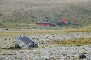 Wir haben uns heute für einen Reitausflug in den Nationalpark angemeldet. Daher gehe ich mit Zora ca. zwei Kilometer die Straße entlang um sie ausgiebig rumschnüffeln zu lassen. Pünktlich um 08:00 Uhr kommt unser Guide mit zwei zusätzlichen Pferden. Da das Wetter regnerisch ist bekommen wir Poncho und wasserdichte Lederreithosen. Entgegen unseren Erwartungen meldet der Guide uns mein Ranger an und wir reiten in den Park. Schnell ist wir von der absoluten Stille des Parks umgeben. Die Landschaft ist auch bei diesem Wetter toll und wir können uns nicht sattsehen. Über drei Stunden sind wir unterwegs und viel zu schnell ist die Zeit vorbei. Nachdem wir zurück sind, starte ich das MANle. Dank Vorheizung springt s sofort an. Susanne hat mit den Ranger Zoras Papiere durchgesehen und wir dürfen mit Zora in den Park einfahren. So machen wir uns auf den Weg zum Cotopaxi Refugee Parking. Dieser Punkt liegt auf 4616m Höhe und ist somit unser höchster Punkt, den wir bisher angefahren haben. Das MANle fährt ohne Probleme auf diese Höhe und hat nur, nachdem es länger im Standgas gelaufen ist, etwas Mühe wieder auf Touren zu kommen. Doch ist das erst Mal geschafft läuft es wieder ohne Probleme. Das Wetter ist sehr neblig und die Sicht gleich Null. Daher machen wir uns gleich wieder auf den Rückweg. Unser nächster Stopp ist die Laguna De Limpiopungo. Auch da verweilen wir nur kurz und machen uns weiter auf den Weg zum Südeingang. Diesen erreichen wir ah wenigen Kilometern und stellen das MANle zum Übernachten auf den großen Parkplatz. Da Zora die ganze Zeit im MANle bleiben musste ist es nun Zeit für eine aufgedehnte Spielrunde. Doch da hat der Deutsche Schäferhund, der hier Wache schiebt, etwas dagegen und attackiert Zora wild. Doch sie lässt sich nicht aus der Ruhe bringen und springt einfach ins MANle. Völlig verdutzt bleibt er draußen stehen und nachdem er abgezogen ist, können wir unbehelligt rumstrolchen. Wir sind recht müde und so gehen wir früh zu Bett. Doch aus der Nachtruhe wird erst mal nichts, denn unser Wachhund ist ein extremer Beller. Irgendetwas bring Ihn auf die Palme und er beruhigt sich nicht mehr. Fast die ganze Nacht bellt er ununterbrochen. Nur mit Ohrstöpsel finden wir etwas Schlaf.