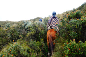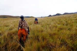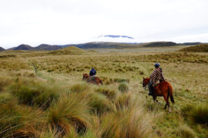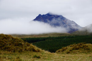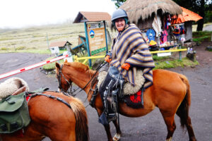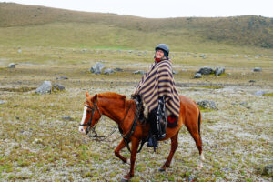 Wir haben uns heute für einen Reitausflug in den Nationalpark angemeldet. Daher gehe ich mit Zora ca. zwei Kilometer die Straße entlang um sie ausgiebig rumschnüffeln zu lassen. Pünktlich um 08:00 Uhr kommt unser Guide mit zwei zusätzlichen Pferden. Da das Wetter regnerisch ist bekommen wir Poncho und wasserdichte Lederreithosen. Entgegen unseren Erwartungen meldet der Guide uns mein Ranger an und wir reiten in den Park. Schnell ist wir von der absoluten Stille des Parks umgeben. Die Landschaft ist auch bei diesem Wetter toll und wir können uns nicht sattsehen. Über drei Stunden sind wir unterwegs und viel zu schnell ist die Zeit vorbei. Nachdem wir zurück sind, starte ich das MANle. Dank Vorheizung springt s sofort an. Susanne hat mit den Ranger Zoras Papiere durchgesehen und wir dürfen mit Zora in den Park einfahren. So machen wir uns auf den Weg zum Cotopaxi Refugee Parking. Dieser Punkt liegt auf 4616m Höhe und ist somit unser höchster Punkt, den wir bisher angefahren haben. Das MANle fährt ohne Probleme auf diese Höhe und hat nur, nachdem es länger im Standgas gelaufen ist, etwas Mühe wieder auf Touren zu kommen. Doch ist das erst Mal geschafft läuft es wieder ohne Probleme. Das Wetter ist sehr neblig und die Sicht gleich Null. Daher machen wir uns gleich wieder auf den Rückweg. Unser nächster Stopp ist die Laguna De Limpiopungo. Auch da verweilen wir nur kurz und machen uns weiter auf den Weg zum Südeingang. Diesen erreichen wir ah wenigen Kilometern und stellen das MANle zum Übernachten auf den großen Parkplatz. Da Zora die ganze Zeit im MANle bleiben musste ist es nun Zeit für eine aufgedehnte Spielrunde. Doch da hat der Deutsche Schäferhund, der hier Wache schiebt, etwas dagegen und attackiert Zora wild. Doch sie lässt sich nicht aus der Ruhe bringen und springt einfach ins MANle. Völlig verdutzt bleibt er draußen stehen und nachdem er abgezogen ist, können wir unbehelligt rumstrolchen. Wir sind recht müde und so gehen wir früh zu Bett. Doch aus der Nachtruhe wird erst mal nichts, denn unser Wachhund ist ein extremer Beller. Irgendetwas bring Ihn auf die Palme und er beruhigt sich nicht mehr. Fast die ganze Nacht bellt er ununterbrochen. Nur mit Ohrstöpsel finden wir etwas Schlaf.