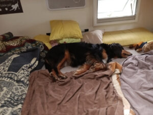 Nachdem der Regen aufgehört hat, starten Zora und ich zu einer kleinen Wanderung. Wieder ist der Fotoapparat dabei und ich über weiter mit diversen Einstellungen. Als wir zurück sind, kontrolliere ich alles und verwerfe die meisten Bilder wieder. Doch es klappt immer besser und einige Aufnahmen sind recht gut geworden. Die Beta lässt mir keine Ruhe und so zerlege ich noch einmal den Vergaser und kontrolliere jedes Teil. Tatsächlich finde ich einen O-Ring der gerissen ist. Dieser dichtet eine Messinghülse ab, in der das Nadelventil läuft, welches für den Benzinstand im Vergaser verantwortlich ist, läuft. So findet das Benzin seinen Weg am Nadelventil vorbei in den Vergaser und dieser läuft über. Zum Glück habe ich ja eine große Box unterschiedlicher O-Ringe an Bord und kann den O-Ring tauschen. Nun hält die Hülse auch wieder gut in ihrem Sitz und das Problem sollte nun gelöst sein. Nun die Zukunft wird es zeigen. Das reparierte Hinterrad zeigt noch keinen Druckverlust, so dass ich hoffe auch hier nun eine endgültige Reparatur gemacht zu haben. Victoria bittet mich nach Ihren vorderen Bremsen zu schauen und wir vereinbaren, dass wir das morgen machen. Anja und Michael mit Ihren Yamaha Ténéré kommen auch von Ihrer Ecuadorrundreise zurück und so kann mir Michael dabei helfen. Er ist auch ein guter Schrauber und hat immer eine passende Idee, wenn es mal nicht so läuft wie es soll. Mit dem Cockpitspray reibe ich nu auch alle Außenliegenden Kunststoffteile des Fahrerhauses ab, um auch diese Kunststoffteile etwas vor der Sonne zu schützen. Zum Abendessen mach ich mit Pfannenkuchen die ich mit gekochten Schinken und Käse fülle. Auch da ist Zora nicht wegzukriegen und die meisten Pfannenkuchen verschwinden schon während des Backens.