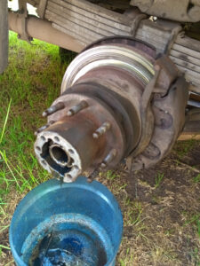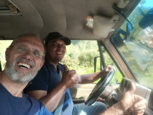 Das Wetter hält heute früh und so schmeiße ich Zora aus dem Bett und wir gehen los auf Fotowanderung. Heute will ich unterschiedliche Focus Einstellungen ausprobieren. Das ist gar nicht so einfach. Doch nach ein paar Versuchen begreife ich wie die Kamera tickt und kann das nun ganz gut ausnützen. Zora geht mal wieder in den Teich zum Baden und kommt eingesaut zurück. So hat man automatisch MANle Verbot oder hat sich freiwillig zur Gerneralwaschung mit dem Gartenschlauch gemeldet. Das weiß sie ganz genau und geht erst gar nicht mit zurück. Bevor Michael und Anja weiterfahren, bitte ich Ihn uns noch schnell beim Lösen der Radmuttern von Victorias Hinterrad zu helfen. Doch wir scheitern kläglich und so bleibt mir nur der Weg zur LKW-Werkstatt, um passendes Werkzeug zu holen. Das erweist sich als absoluter Glücksfall für Viktoria. Denn dort können wir nicht nur passendes Werkzeug holen, sondern auch alle Lager auspressen und kontrollieren. Diese sind allesamt in einem guten Zustand und nachdem wir alles akribisch gereinigt haben, pressen wir diese wieder ein. Geschmiert werden sie da durch das Axial Öl, daher gibt es nichts zu fetten. Auch die Simmerringe sind gut, allerdings hat die Spannkraft der umlaufenden Feder etwas nachgelassen. Daher wird die Feder kurzerhand einen Zentimeter kürzer gemacht und wieder eingedreht. So ist wieder ausreichend Spannung auf der Lippe des Simmerrings. Wieder was gelernt. Leider ist die Bremsscheibe nicht mehr zu gebrauchen und daher bestellen wir in Tucán eine Neue. Da diese hier nicht zu kriegen ist wird sie von einer Spezialfirma angefertigt. Das ist hier in Ecuador eine ganz normale Sache. Auch die beiden hinteren Bremsklötze müssen komplett überarbeitet werden. Daher pressen wir die Bremszylinder aus und reinigen diese mit einem Reinigungsfließ, bis sie blitzblank sind. Das gleiche machen wir auch mit den Führungsgehäuse, so dass diese nun wieder ohne Spiel ganz leicht laufen. Tatsächlich bekommen wir im Bremsenladen für diese Bremsklötze Reparaturkits, sodass wir alle Gummiteile erneuern können. Auch neue Bremsbeläge gibt es da. Victoria kann Ihr Glück kam fassen und ist nun endlich auf der Zielgeraden angekommen. Nach der Lieferung der Bremsscheibe muss nun nur noch alles zusammengebaut werden und sie kann mit sehr gutem Gewissen weiterfahren. Da es wieder sehr spät geworden ist bleibt uns nur der Gang ins Restaurant zum Abendessen. Auch Silvia und Berd kommen mit. Wenig später gesellen sich auch Daniela und Franz dazu.