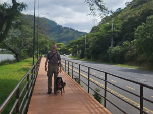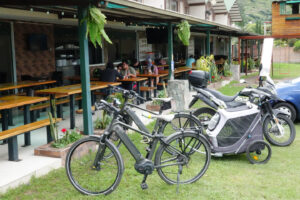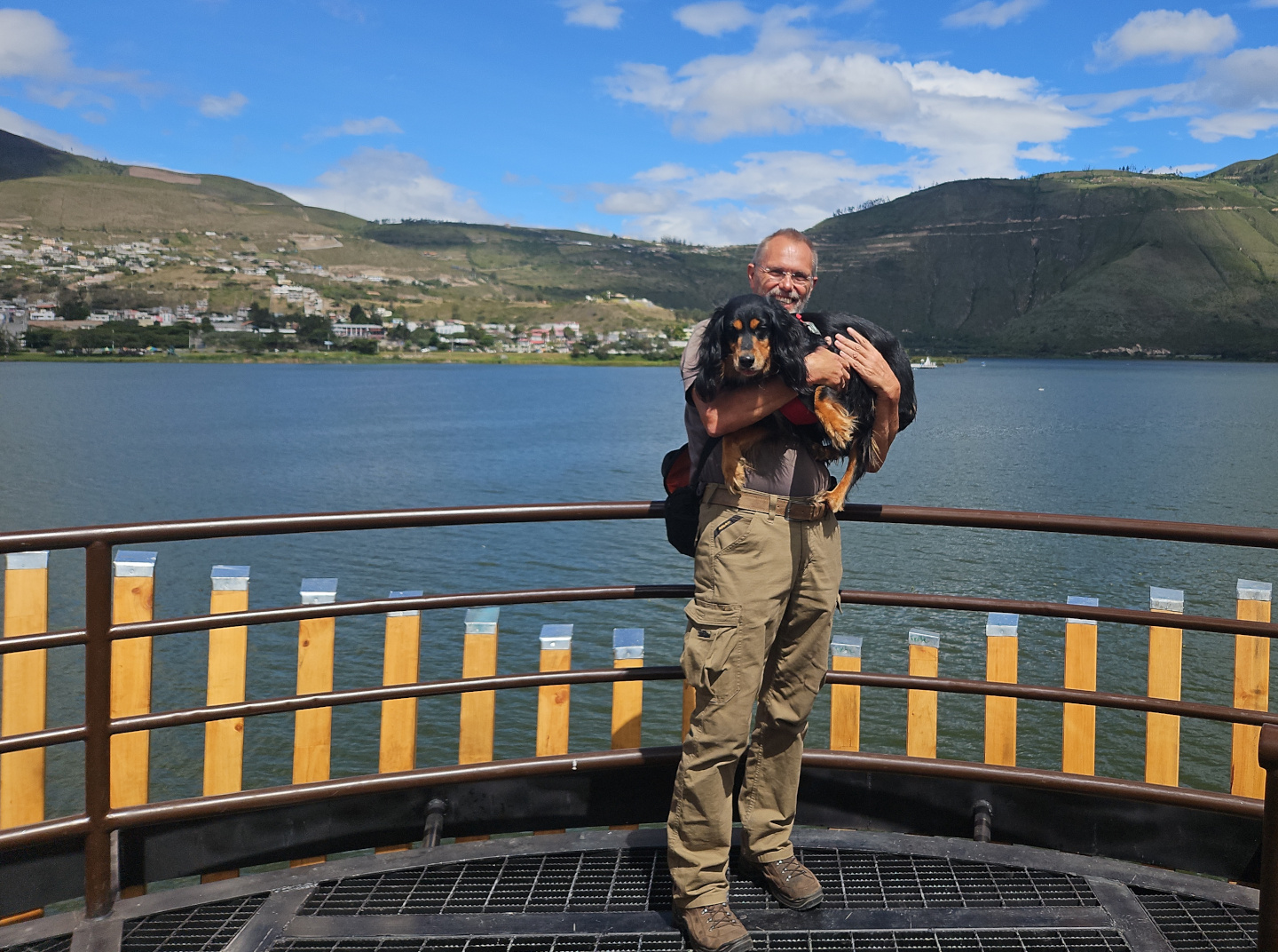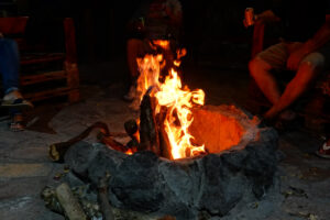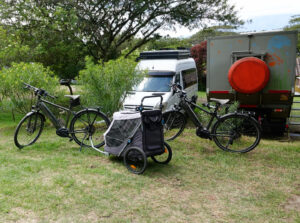 Es wird Zeit mal wieder mit den Fahrrädern eine Tour zu fahren. Da um die Lagune ein breiter Radweg führt, ist das auch sehr gut zu machen. Ich hole den Hundewagen aus dem MANle und baue ihn zusammen. Die Reifen sind platt und so pumpe ich diese auf. Glücklicherweise hält die Luft in beiden Reifen. Auch die Fahrräder pumpe ich auf und öle die Ketten. Nachdem die Computer angebracht sind funktionieren diese tadellos. Auch die Akkus haben noch 75% Ladung, was für die kurze Strecke vollkommen ausreichend ist. Zora ist ganz glücklich im Hundewagen mitzufahren und geht bereitwillig in den Anhänger. Sie genießt das sichtlich, denn als wir anhalten, um eine kurze Strecke zu laufen, will sie gar nicht aussteigen. Auf der anderen Seite der Lagune gibt es einen schönen, ca. einen Kilometer langen Steg, auf dem man sehr gut laufen kann. Wir binden die Fahrräder an einen großen Pfosten und laufen mit Zora bis runter zu den Aussichtstürmen. Da diese Gitterröste als Treppe haben, trage ich Zora einfach hoch. Auch die Plattform oben ist aus Gitterrösten erstellt und so geniest Zora die Aussicht in meinen Armen. Auch auf diesem Ausflug habe ich die neue Kamera dabei und übe mich beim Fotografieren unterschiedlichere Objekte. Wir sind zügig unterwegs und so kommen wir bereits am frühen Nachmittag zurück. Ich lade gleich die Akkus auf und tausche dieses gegen unsere Ersatzakkus aus. Auch die Ersatzakkus lade ich nach, damit wir beim nächsten Ausflug die volle Power haben. Wir gehen runter ins Restaurant und gönnen uns einen Kaffee und ein Stück Torte. Manuel macht heute für die gesamte Truppe einen großen Eintopf mit Lammfleisch. Daher treffen wir uns mit Schüssel und Löffel bewaffnet im großen BBQ-Bereich. Der Eintopf ist sehr schmackhaft wir essen uns ordentlich satt. Auch Zora bekommt natürlich ein paar Fleischbrocken ab. Manuelgibt uns die ausgekochten Knochen für Zora. Er hat noch viel Fleisch an den Knochen gelassen, so dass es für Zora ein echter Sonntagsbraten ist. Nachdem das angezündete Lagerfeuer nicht mehr stark raucht setzen wir uns um das Feuer und genießen den Abend.