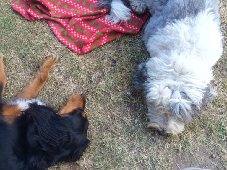 Um 08:00 Uhr gehe heute früh zu Gina um sie für eine kleine Runde über den Platz zu holen. Zora ist mit von der Partie und auch einer der Hunde