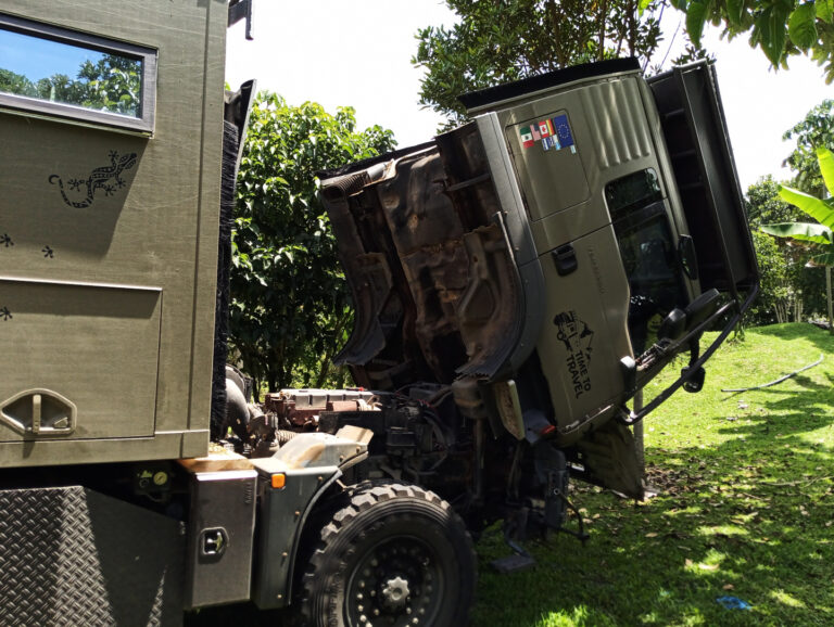 Pünktlich um 23:00 Uhr steht mein Fahrer John vor dem Tor. Leider ist dieses abgeschlossen und wir müssen den Platzwart wecken, damit er aufschließt. Nachdem wir die Kardanwelle eingepackt haben
