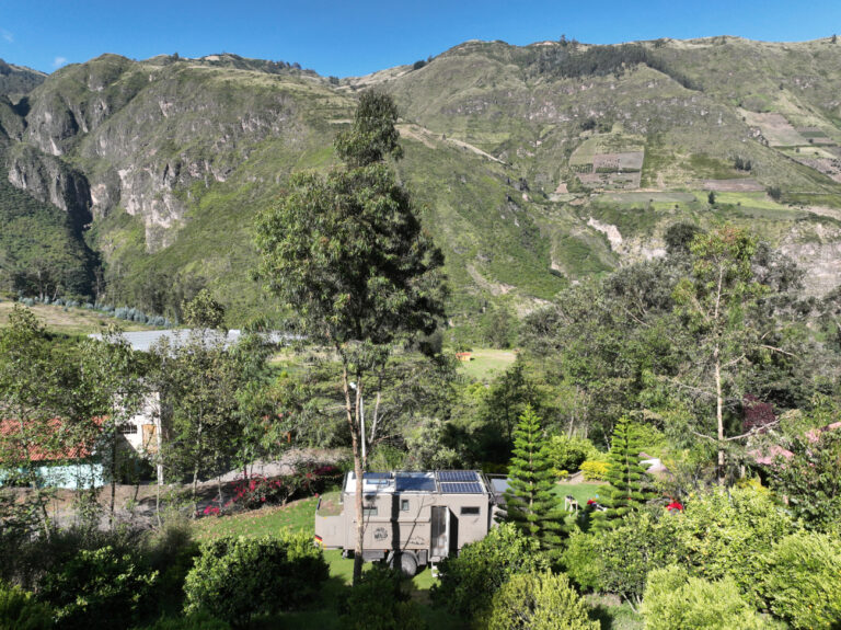 Bereits um 06:30 Uhr holt uns Danilo ab, um uns zu seinem Campground Mirador Del Oso Andino zu begleiten. Er versichert uns, dass der Erdrutsch so weit geräumt ist, dass