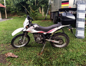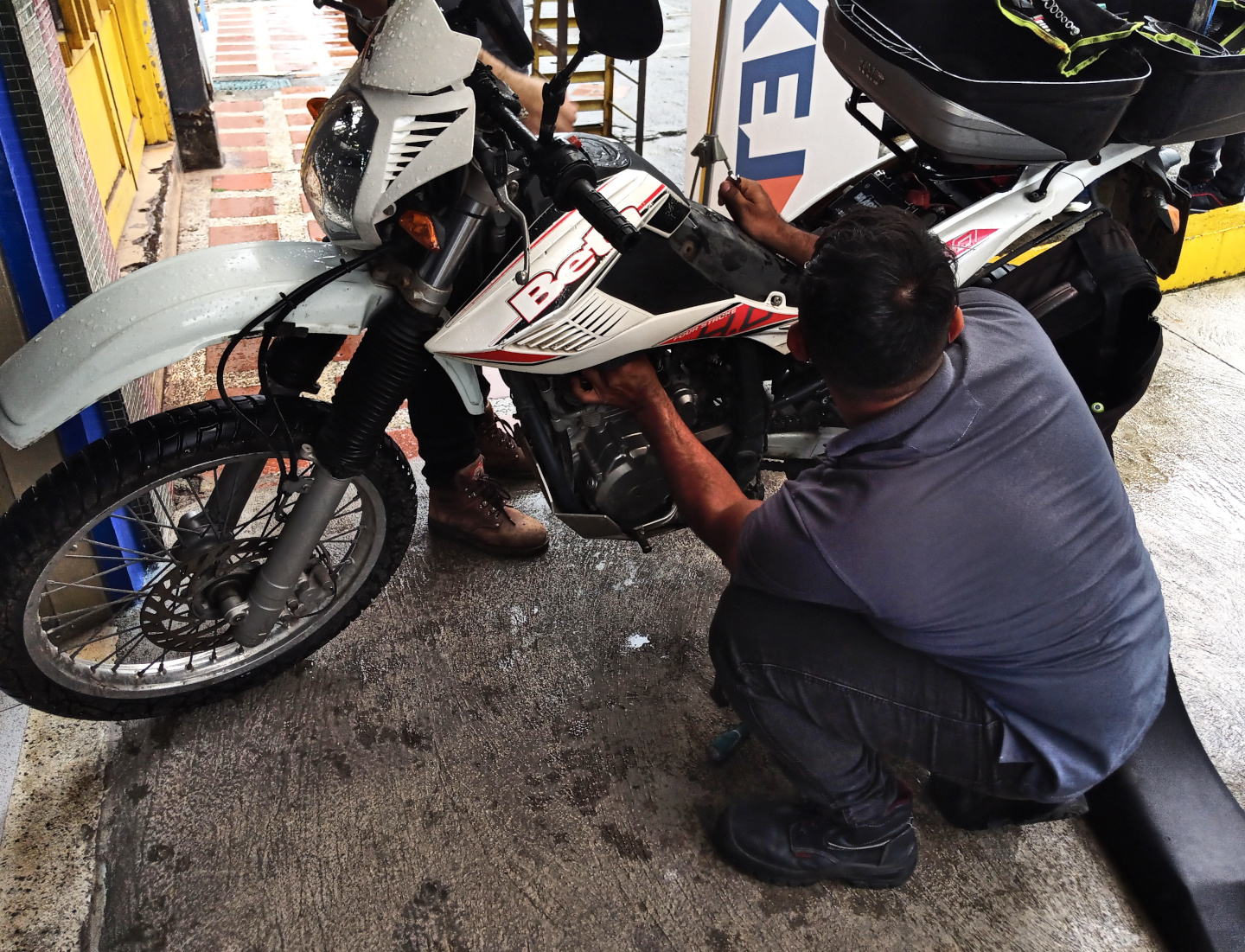 Heute früh werden wir von heftigem Regen geweckt. Es regnet sintflutartig über drei Stunden. An rausgehen ist nicht zu denken und die Anlage hier steht wieder unter Wasser. Überall bilden sich sehr große Pfützen. Ich bin froh, dass unsere MANle komplett dicht ist. Zora bleibt eh lange liegen, sie stört das überhaupt nicht. Ich nutze die Zeit um ein wenig spanisch zu lernen und meine Service- u. Reparaturtabellen zu pflegen. Dabei erschrecke ich immer wieder, was wir schon alles geschrottet haben. Allerdings haben wir auch vieles verbessert. Da meine Visaverlängerung nicht kommt, muss ich nach Pereira zur Migrationsbehörde fahren. Es regnet zwar immer noch, doch ich habe keine Wahl. Ich brauche das Dokument um den Tipp für das MANle und die Beta zu verlängern. Schon auf der Fahrt nach Pereira merke ich, dass die Beta stottert. Doch in der Stadt läuft sie wieder problemlos. Ich werde bei der Migrationsbehörde von einem sehr freundlichen Wachmann empfangen. Er kümmert sich darum, dass ich zum richtigen Schalter komme. Mein Antrag ist nicht im System zu finden, obwohl ich einen Ausdruck mit der mir zugesendeten Bearbeitungsnummer vorzeigen kann. Wir machen kurzerhand Online einen neuen Antrag, der auch sofort im System zu finden ist. Die Beamtin bearbeitet den Vorgang sofort und erklärt mir, dass nun alles erledigt ist und in drei Tagen meine Papiere zugesendet werden. Ich erkläre Ihr mein Problem mit dem Tipp. Sie geht zu einem anderen Beamten am Schreibtisch. Dieser sendet mir das Dokument sofort zu. Als ich alles habe verlasse ich, trotz des Regens, gut gelaunt die Migrationsbehörde. Leider will die Beta nicht anlaufen und die Batterie macht schnell schlapp. Ich suche eine Motorradwerkstatt und schiebe das Motorrad dort hin. Das sind gut einen Kilometer und natürlich muss ich einige Steigungen überwinden. Die Motorradwerkstatt ist eher ein Zubehörladen und so kann ich wenigstens eine neue Batterie kaufen, damit die Beta wieder Saft hat. Doch laufen will sie nicht. Die Zündkerze hat einen schwachen Funken und auch der Zündkerzenstecker ist gebrochen. Ich mache mich auf den Weg um das alles neu zu kaufen. Doch die Zündkerze ist nirgends zu bekommen. Ich klappere einige Läden ohne Erfolg ab. Letztlich bekomme ich dann doch noch eine passende neue Kerze. Doch auch damit läuft die Beta nicht. Die Leute vom Laden schicken mich zu einer anderen Motorradwerkstatt. Doch diese kann ich nicht erreichen. Es geht so steil den Berg hoch, dass ich die Beta nicht hochschieben kann. So muss ich einen weiteren Umweg gehen um eine zwar längere, aber nicht so steile Straße zu nehmen. Unterwegs muss ich immer mal wieder anhalten um etwas auszuruhen. Da kommt mir eine Idee. Wasser im Tank. Die Beta ist ja tagelang im strömenden Regen gestanden. Ich ziehe den Benzinschlauch ab und lasse Sprit ab. Nun ist alles klar. Der Sprit ist ganz milchig. So kann die Beta nicht laufen. Als der Sprit klar wird baue ich alles wieder zusammen und starte die Beta. Sie läuft gut und so kann ich mich auf den Rückweg machen. Allerdings komme ich nur einen Kilometer bis die Beta wieder streikt. Wieder lasse ich Benin ab und wieder läuft sie. Das muss ich noch einige Male wiederholen, bis ich wieder beim MANle ankomme. Klar, wenn man eine Tankstelle braucht ist keine da. Ich lass erst mal Zora raus und kümmere mich um die Online-Tippverlängerung. Nachdem ich die Bestätigungen für den Eingang meiner Anträge erhalten habe, lasse ich den restlichen Sprit aus dem Tank der Beta. Viel ist es ja nicht mehr. Mit neuem Benzin läuft die Beta wieder rund und ich kann auch die alte Zündkerze wieder verwenden. Nun habe ich auch eine Ersatzzündkerze dabei für alle Fälle. Ich hole mein kleines Ladegerät für die Lihium Batterie und lade die Batterie voll. Diese kann ich gut lagern und so bleibt die neue Batterie erst mal in der Beta. Heute gibt es Hänchenbrust mit Salat zum Abendessen. Zora weicht nicht von meiner Seite. Sie war zu lange im MANle eingesperrt. Zum Glück bleibt es heute Abend trocken. Dennoch lege ich eine Folie über den Tank, damit kein Wasser mehr reinlaufen kann. Ich muss mir hierfür eine Lösung einfallen lassen