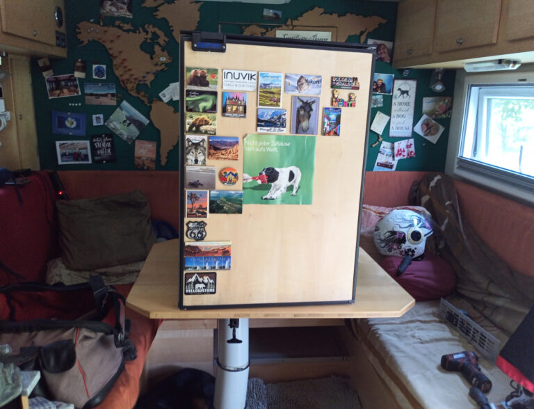 Es hat bereits in der Nacht begonnen zu Regnen und das setzt sich auch am Morgen fort. Daher sind wir erst einmal zu Hausarbeit verdonnert. Ich hole alle Ersatzakkus und